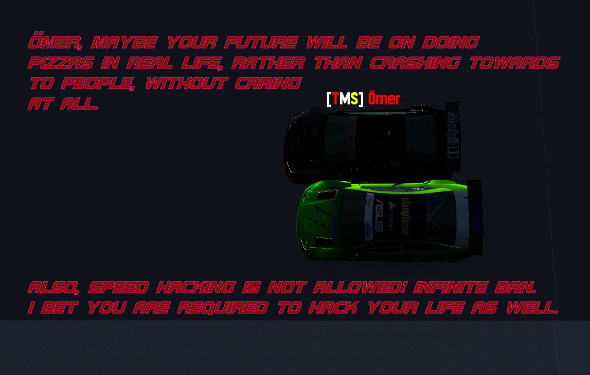 KARAGÜMRÜK GANG ATTACK, ataslfs24 and WAS CAN as those accounts are called in LFSWorld, will receive infinite time of ban to MTDZX- Flat Out! for speed hacking and crashing other racers during Round 28. Also several other racers from Brazilian Cruise servers managed to have a ban, but that did happen outside of Round 28, so names will not be published.