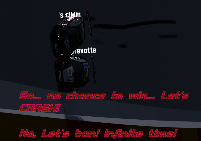 Replay shows it was not Y.Laprevotte's fault, but that didn't stop of doing revenge ramming and immediately leaving from the race. All three guys who are mentioned earlier post will receive infinite ban of disgraceful effects and speed hacking. Y.Laprevotte had to DNF as !flip command did not save him.