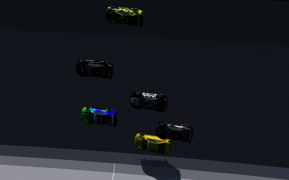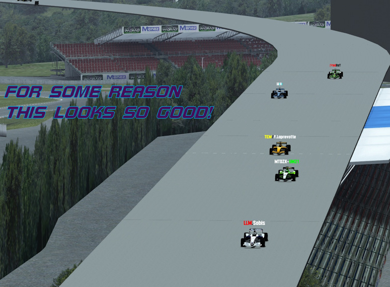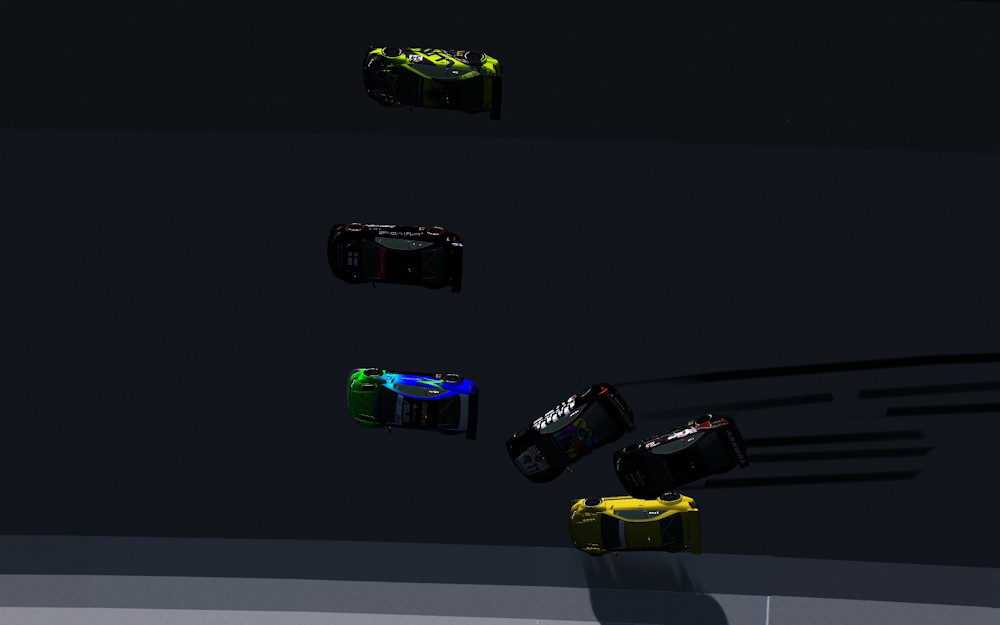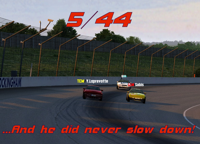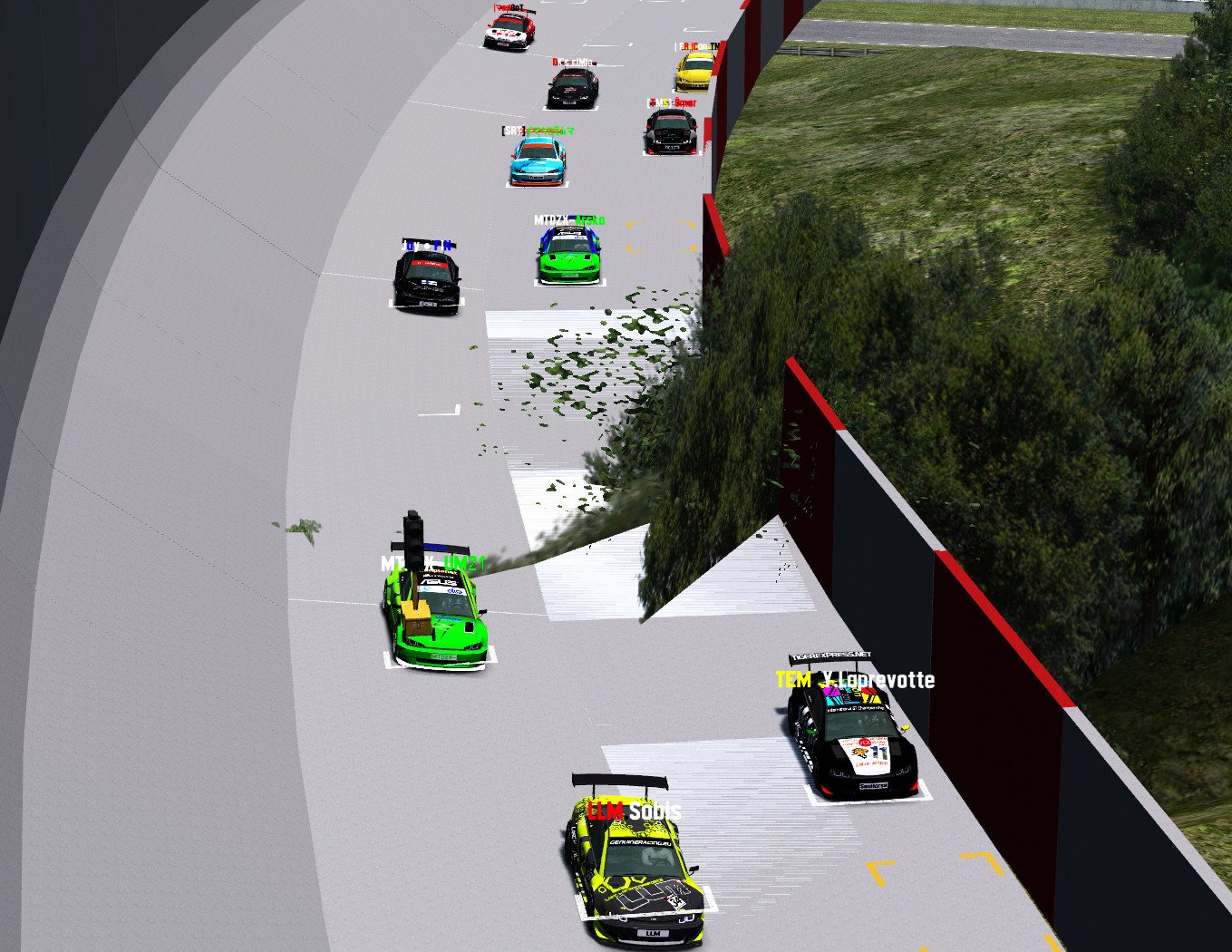 All 6 drivers were very close to each other, until this happens. 3 guys having collision, including the one from leader pack, Y.Laprevotte from Tiger Express Motorsports ( LFSW: GreyBull [CHA] )