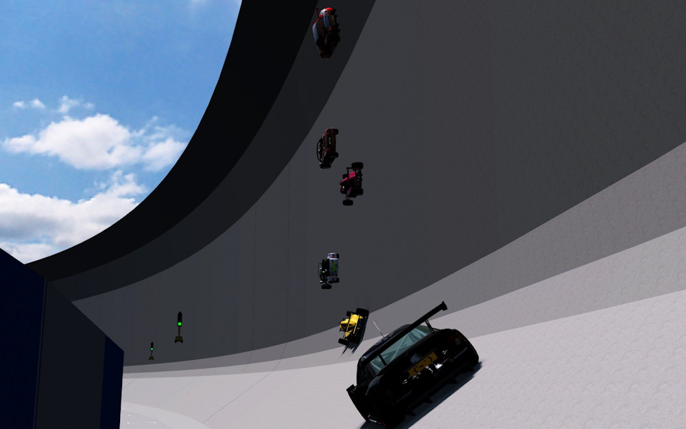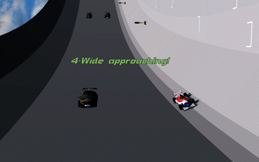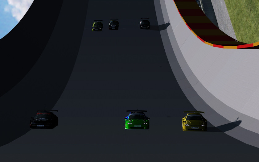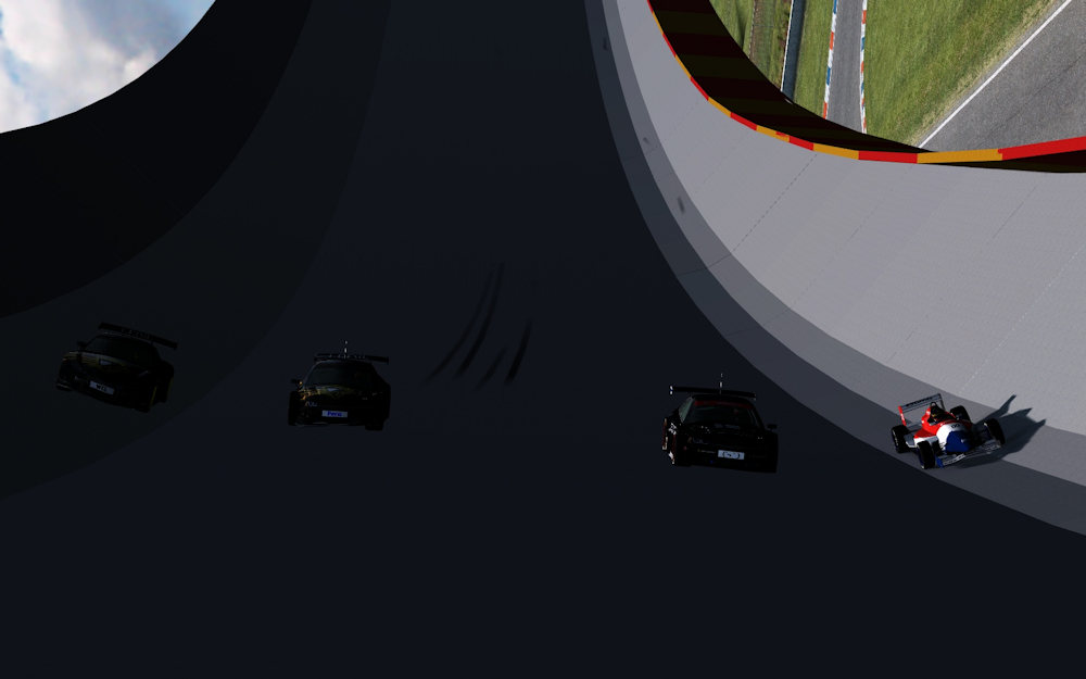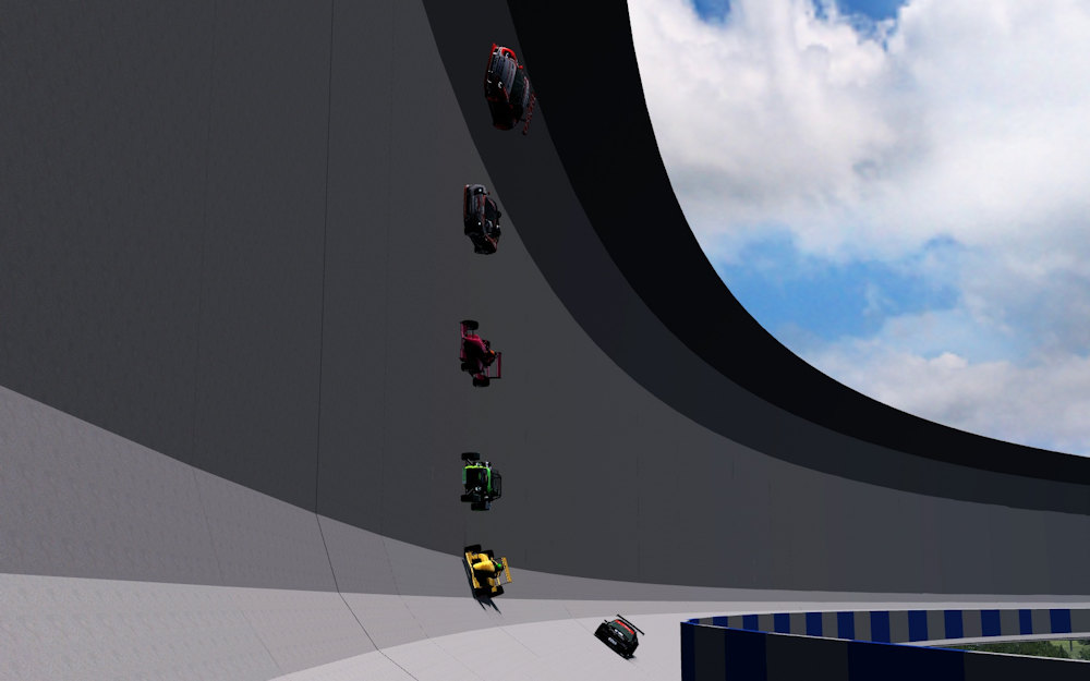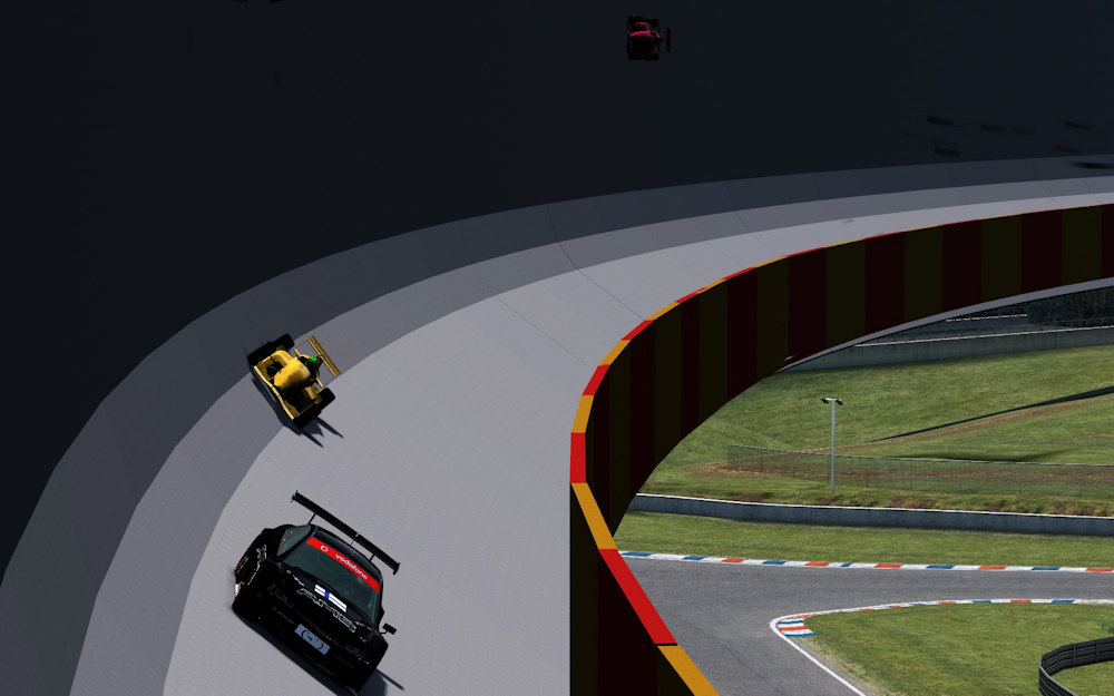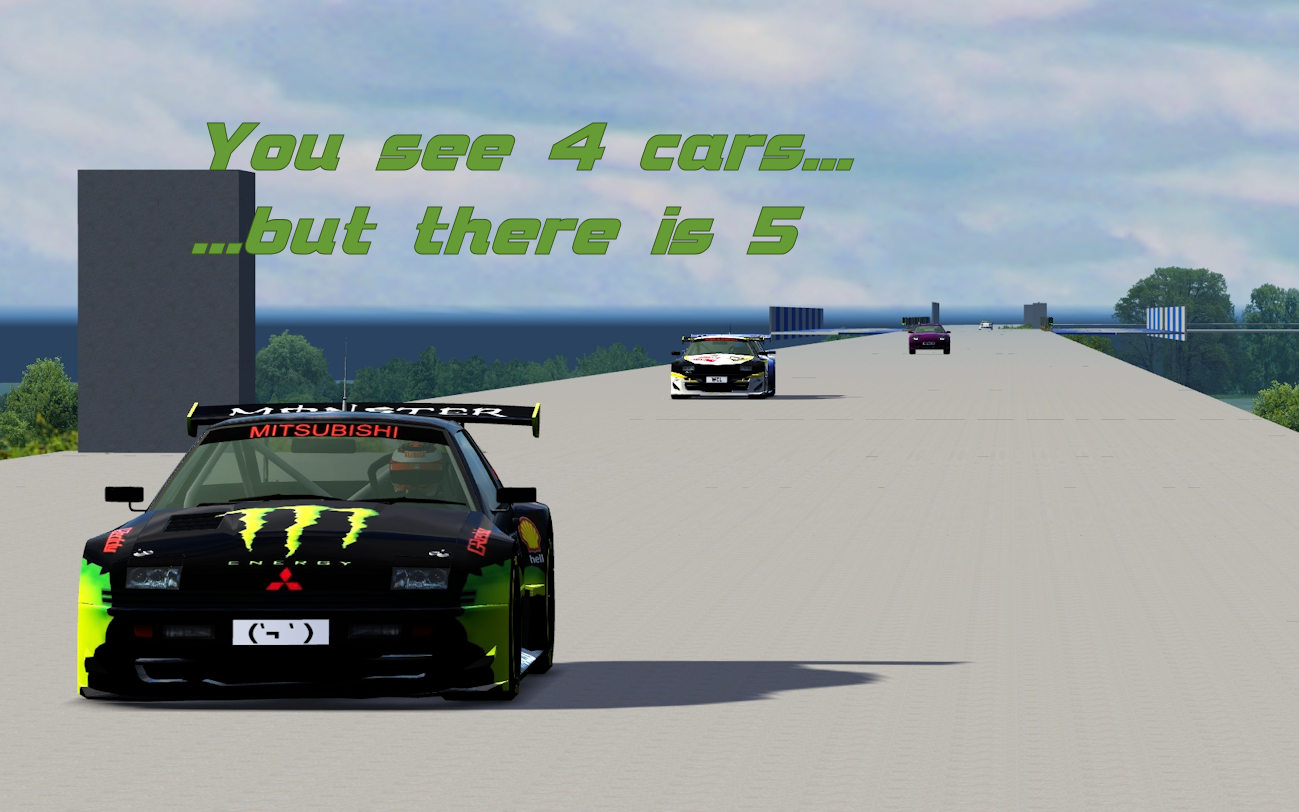 Top speed was much slower than expected, but only because not enough racers to gather side drafting, which multiplies the amount of actual draft the more people it involves. This abuse is however legit as it does not involve any hacks or tools and is possible to do in vanilla LFS.Exe. This side draft is technically possible to have several racers driving on each other, and because track had 90 degree banking, technically they were on each other. This works in any solution, as long as there is driver under or on other racer, it will make an effect of infinite draft. The more people it gathers, the stronger it is.