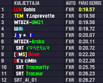 3rd place is taken by Arska, who managed to keep his pace to the finish line. Only lost to winner by 0.02 seconds, but managed to make his first official fastest lap in round! Close one!