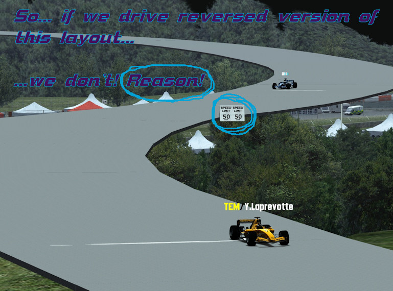 Btw, it DOES technically contain jumps, but those have been since forever. So basically, I didn't lie, but what I tried to mean that it indeed contains NO LARGE airbourne possibilities, unless you drop off the track of course.