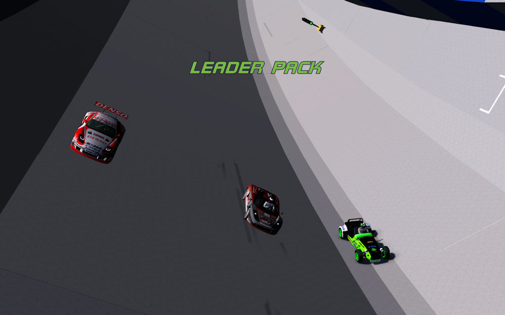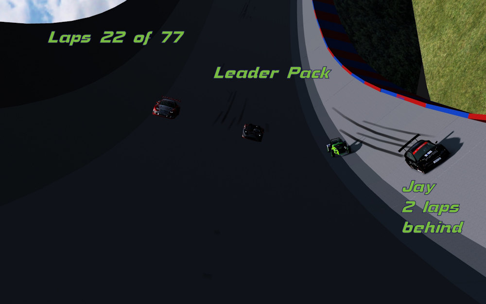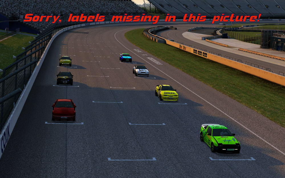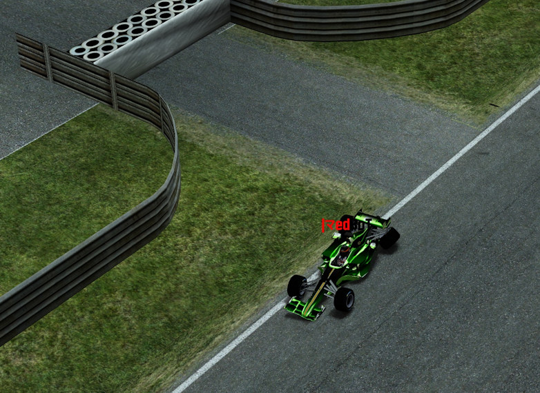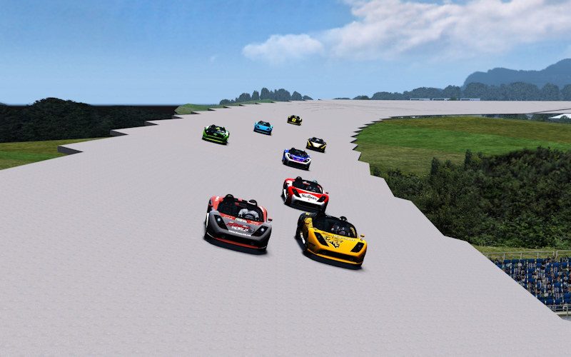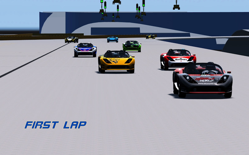 Beautiful picture taken from after Turn 1, and the moment when first lap is completed! RedBot (LFSW: redbot_ ) goes immediately for mandatory pitstop.