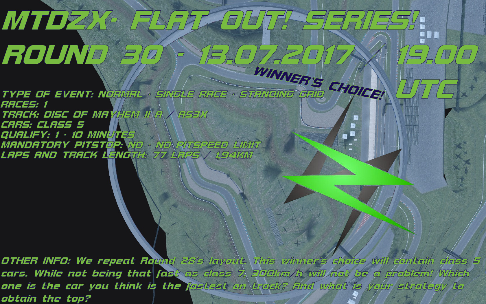 Thank you for participating this round ( excluding few, obviously ). Next round will take on place next Tuesday, 19:00 UTC. Track is random, cars are also random. Stay tuned!