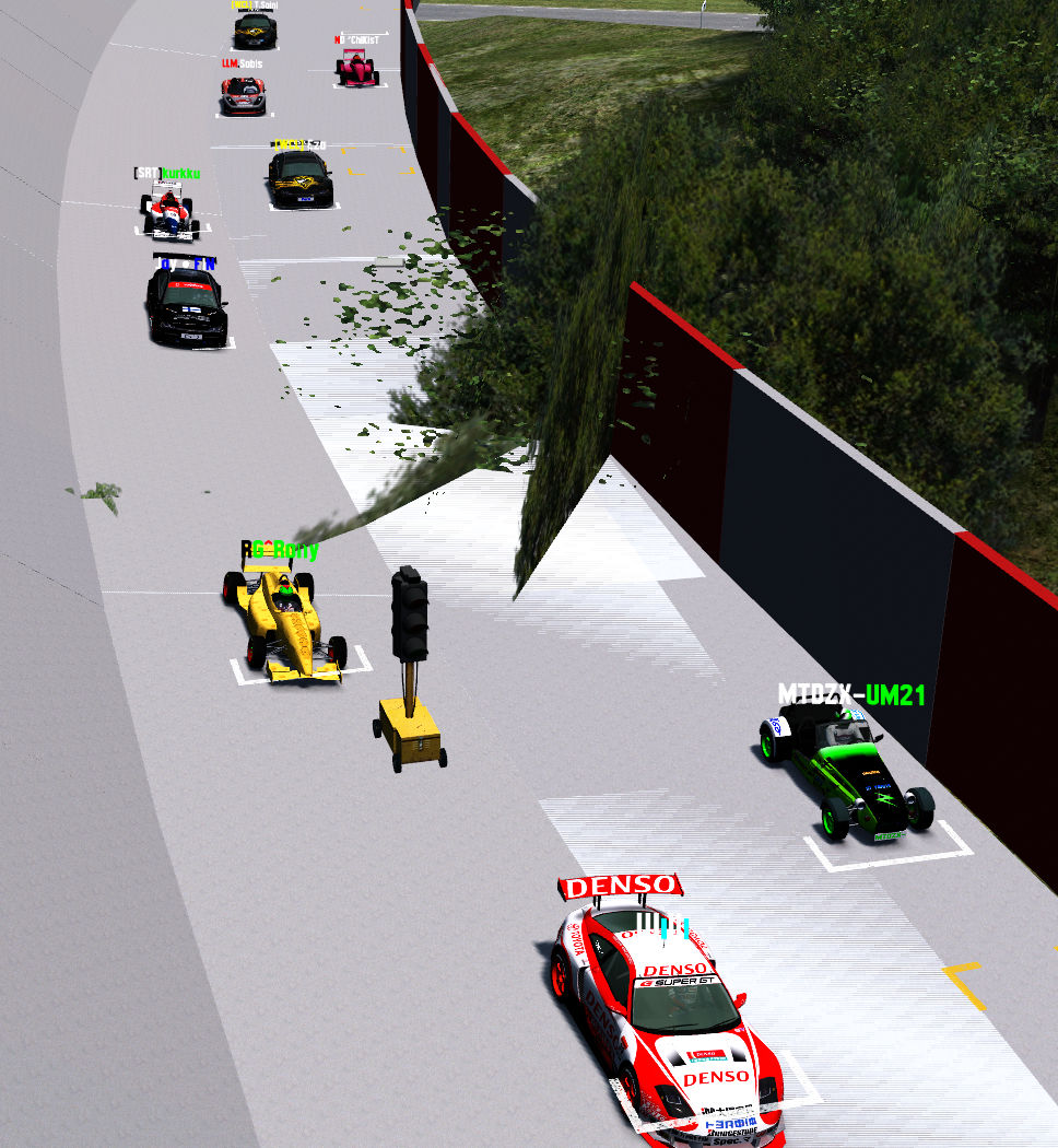Nothing big critical things did happen. However, another guy gives up for simply not enough speed and didn't bother to continue. RedBot ( LFSW: redbot_ ) DNF's by driving cleanly to the pitlane and spectates.