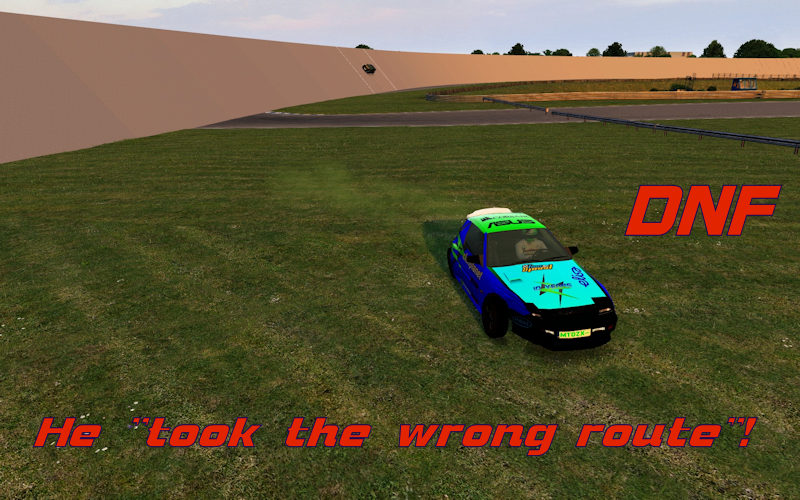 Oh no... on last lap, he gets off and has to DNF by LFS deciding for not finishing the race... Another unfortunate moment, and another retirement for his career in Flat Out! Series! Too bad.