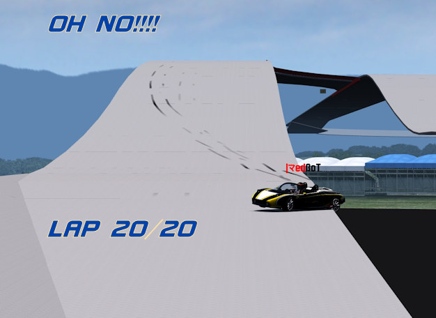 Surprisingly, Willi did "only" get no higher than 5th place. Having a weird take-off on lap 16, which has slow motion video about it, was absolutely at least podium pace. It was unfortunate drop-off for him, as being probably LFS Bug, Willi did hit a mysterious, invisible object, which can happen if perfect angle is performed towards to down. There is also similar fashion to get actually slightly more speed from landing, but it happens more rarely than hitting and getting off. Anyway, finish is finish!