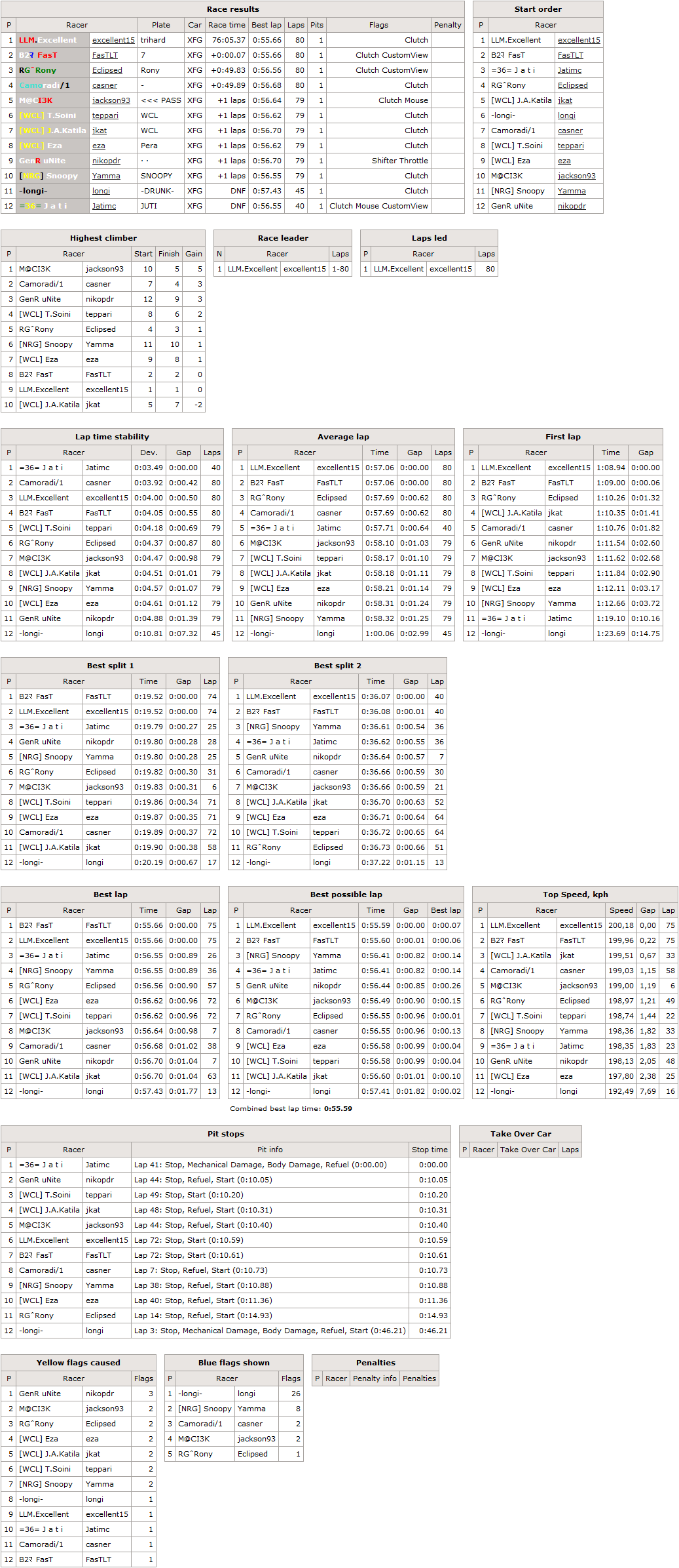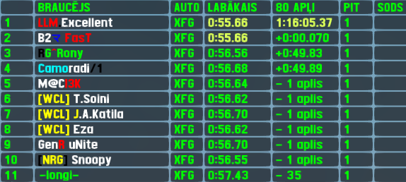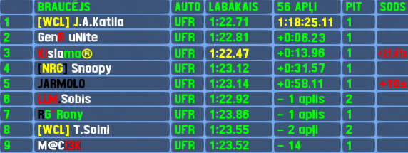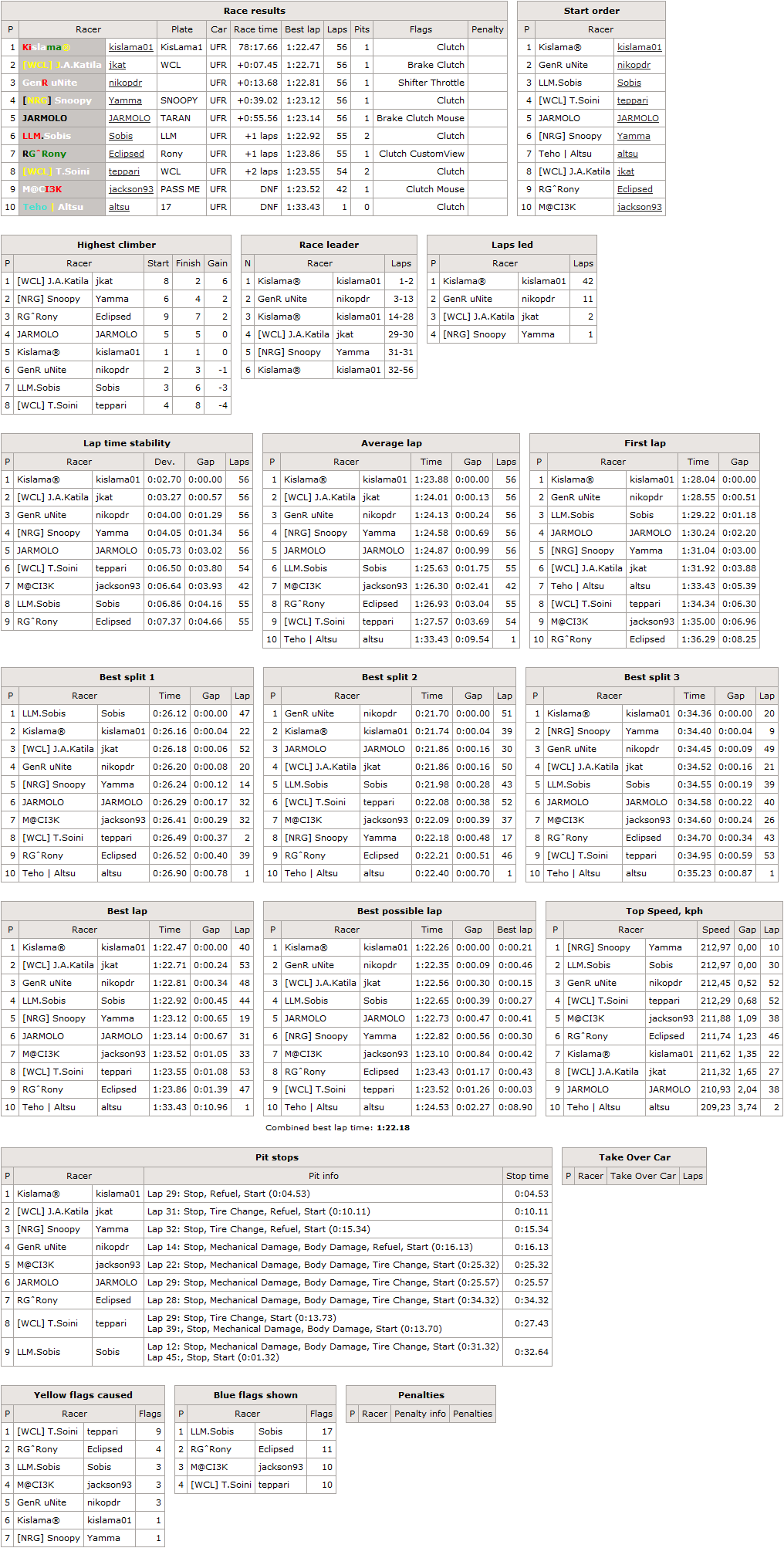 And once again T.Soini is the clock pitter of the race with 10.12s work free pitstop,0.01s slower than Spiky's refuelling pitstop,which was the shortest overall.