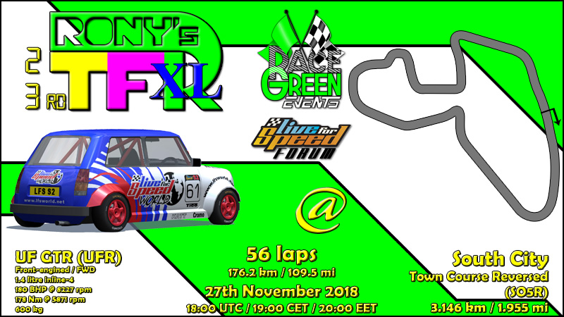 The 2nd year of RTFR XL is over,2019 will bring another 12 races,every 4 weeks starting in 29th january - this means a total of 7 weeks vacation for this event. Combo is not yet known,the winner this time has a bit more time to chose it. Until next RTFR XL there will be 3 normal RTFRs,one of them already next week. 2 weeks from now the X-mas madness will return for it's victims in 8th annual This is Crashmaaas !!! And the 8th season of RGE's winter league AWS will start in 1st sunday of the new year,featuring 6 slippery rounds,2 of them will be new,2 very classic,2 with some changes - more details will be announced next week.