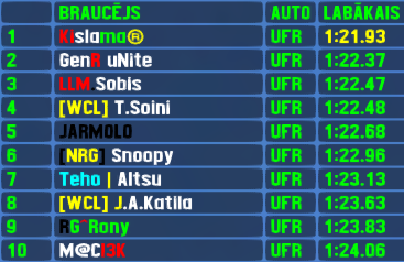 It was the 2nd race in row with a hungarian driver being the fastest in qualifying,this time it was L.Kovács,who earned his 2nd pole position,2nd fastest lap of the race and also was able to convert his pace into race win putting also Hungary in race winners list. L.Kovács is the 15th different winner in the RTFR XL's 2 years history,he also scored his 3rd top5 finish and set the 10th biggest margin of victory. The defending winner J.A.Katila finished 2nd,earning his 9th top5 finish,right behind (or over finish line actually beside) him was his compatriot Unite,scoring his 3rd top5 finish. 2-time winner Spiky crossed the finish line 4th,4 top5 finishes for him now,5th was Sobis,improving his only previous finish here by 1 position.