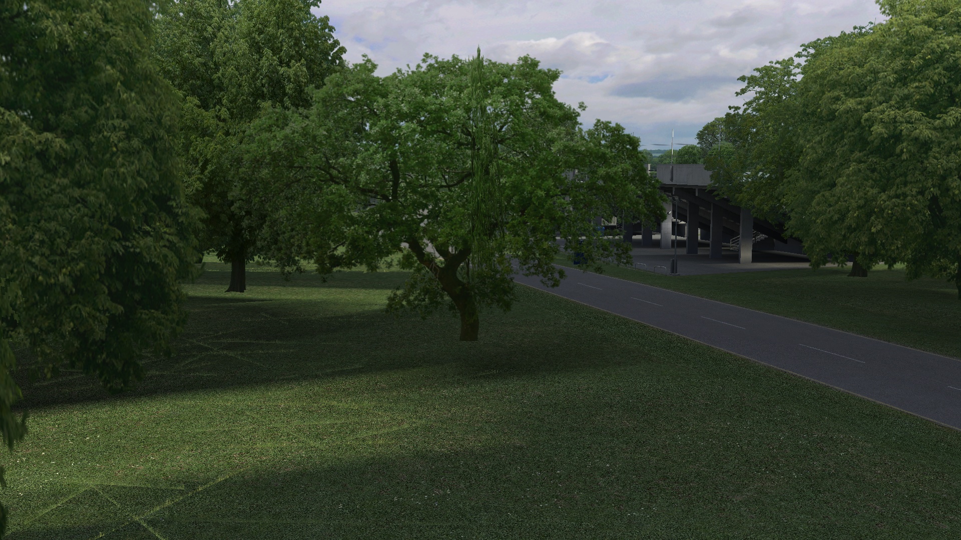 The camera is blocked by the tree when going along that road (Screenshot 1 and Screenshot 3). I know the camera points at the car when at the intersection, but that tree blocks the view all the way until it passes to the next camera -which iirc its near the bathrooms- (Screenshot 2).