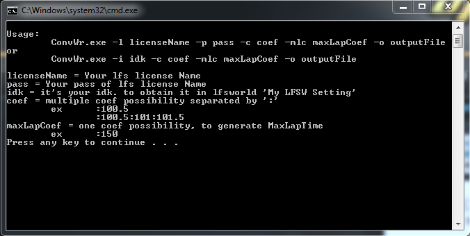 ConvWr.exe -t idk -c coef -o outputFile