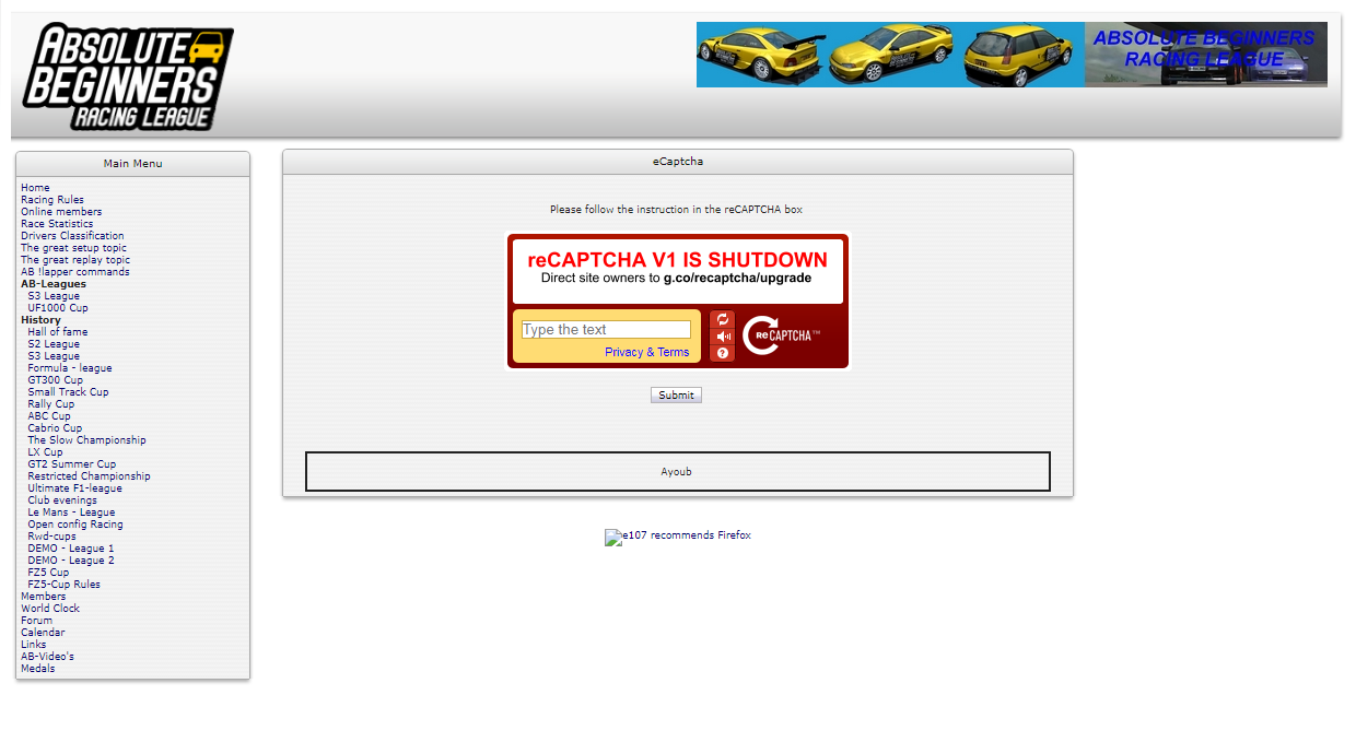Quote from Ayoub2016 :Hello All , I Love This League And I Wanted To Race With You Guys , But I Have Small Problem Here , I Can't Sign-Up In Your Web-Site , Issue With "Capatcha"