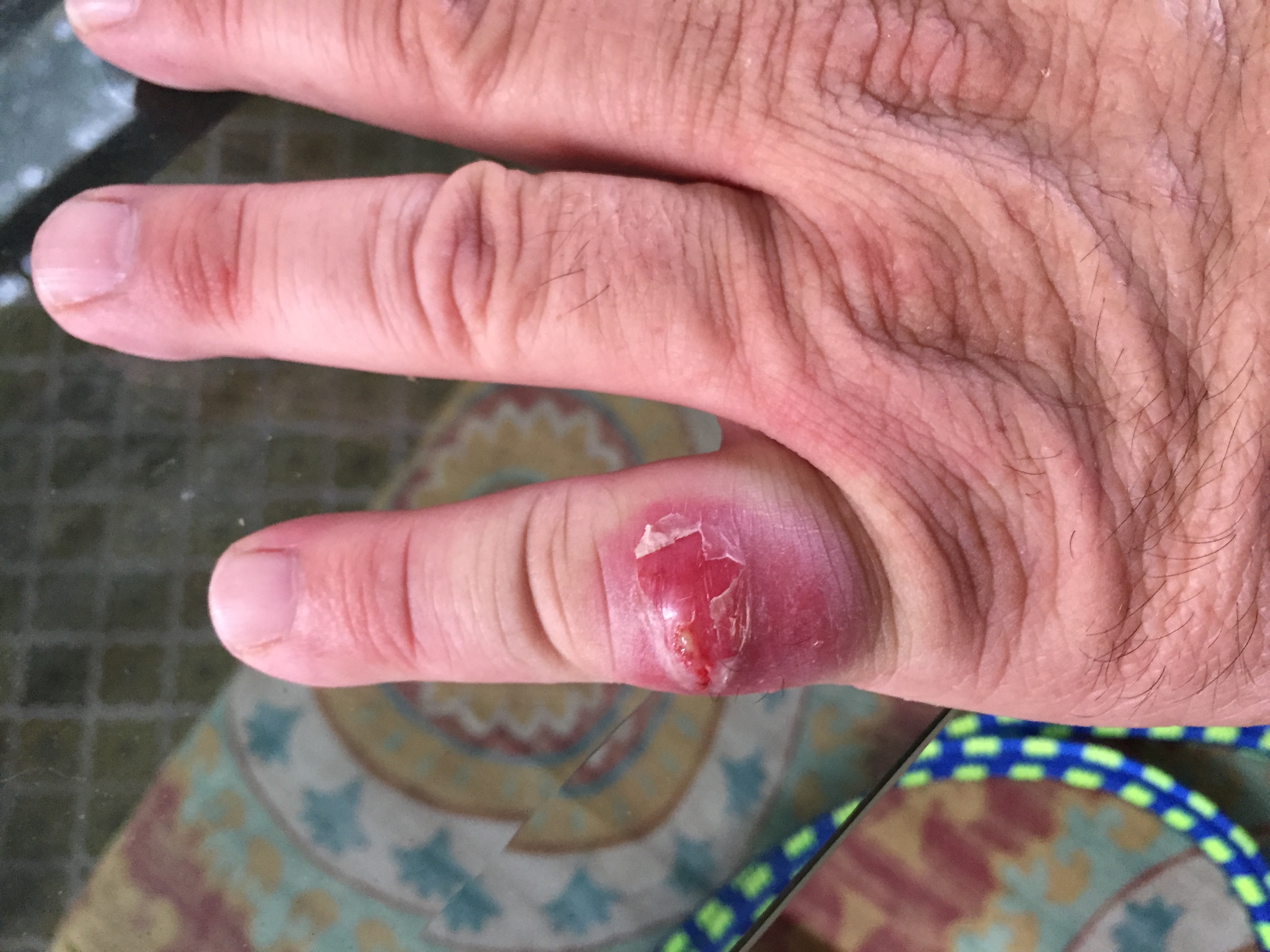 If I posted a photo of what it looks like now, I'd get banned for putting up offensive content. As far as pain goes? Imagine catching your finger on fire and putting it out with a hammer. LOL It sorta looks like that now. The bite was a week old in the photo. I have at least another two weeks to go. Brown recluses are some nasty spiders.
