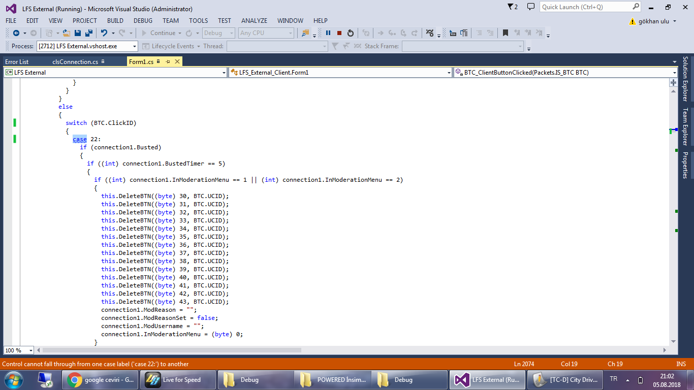 Quote from NEvaldas :You forgot break; at the end of case. Simpler example of this error: https://stackoverflow.com/a/6696709 thx