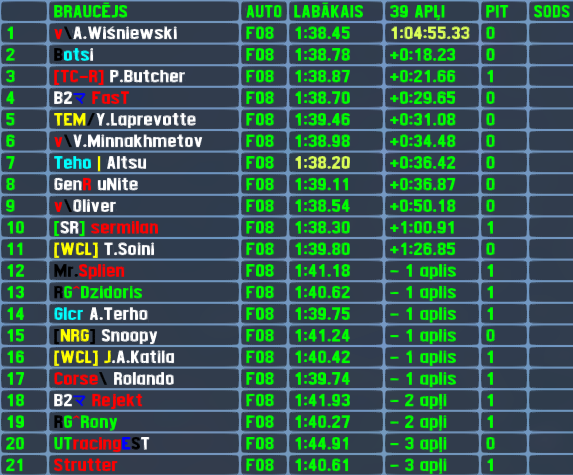 I couln't get the lap together during qualifying and I knew it was going to be a nightmare to pass on that track, so I was pretty sceptic about my chances in the race. However, mistakes from others helped and also managed to pass Yann after following him first 30 laps. Early christmas present from Pete was also welcome Smile