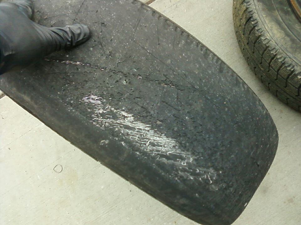 throwing this out there, LFS is one of the FEW driving sims that actually do this right. believe it or not, whcih saddens me these days so very few real drivers because of how cars are now even making humans believe there is a "drift mode" in real life makes me sick but, topic at hand YES the jelly tires ARE realistic, in fact a lot of times it has saved my car and possibly me in real life, when they turn to jelly on ur ass in the seat, it lets you know they are about to explode, i will enclose a picture of my tire with new/old ones going on in the back of pic, and the jelly feeling is how i was able to predict my tires needed changing asap (daily driver/toy/all rolled into one)