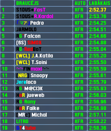After almost 3 years break XFR returned for racing in the RTFR XL and it returned in same environment as it was used before - in Aston. Race had a distinctive leader in person of the combo's world record holder,but he could not stretch his lead to reach in top10 of biggest margins of victory. And lack of full race distance practice caused quite many tyre failures mixing up the possible results once more.