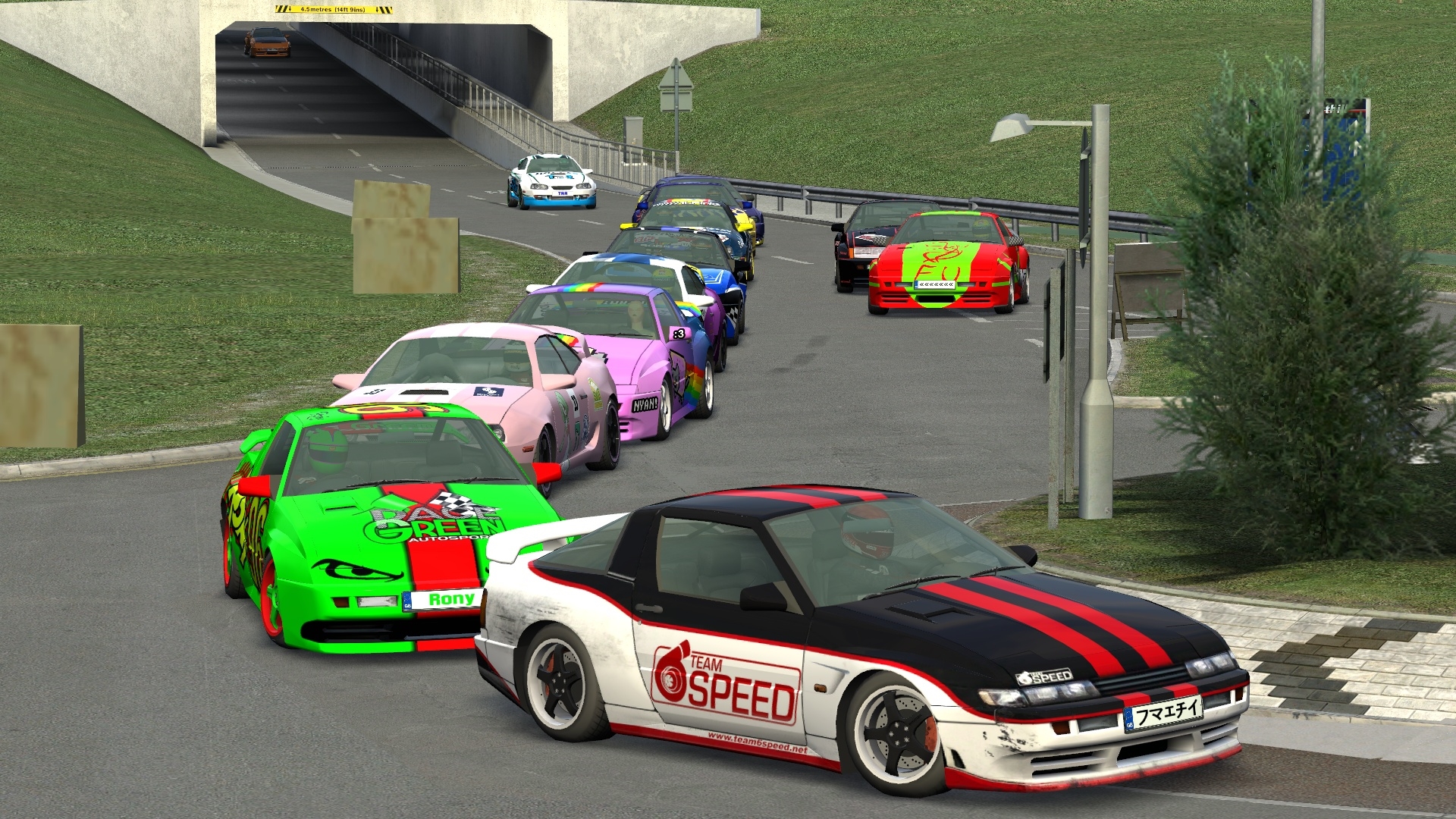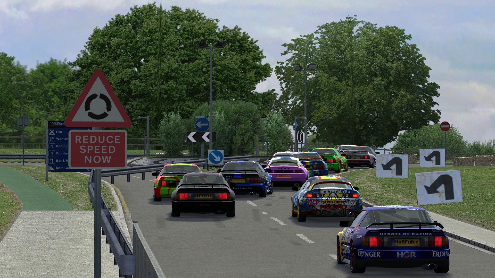 Blue flag behaviour - due long lap very rarely such occasion might happen. Even if the usual Race Green Events' rule of "you may not block lapping car's passing manouvre" is used also here,it is advised to try not to stay ahead of lapping car and let by in safe location before lapping pass is needed. Lapping cars still have to be very patient,wait for safe opportunity to lap and not force a pass in narrow turns.