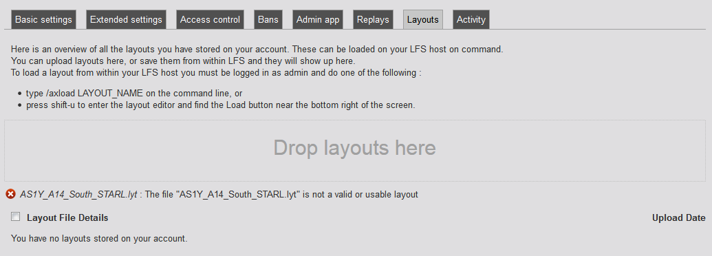 As the title says - can't upload any layout to host,it says "not a valid layout" (see attachment).