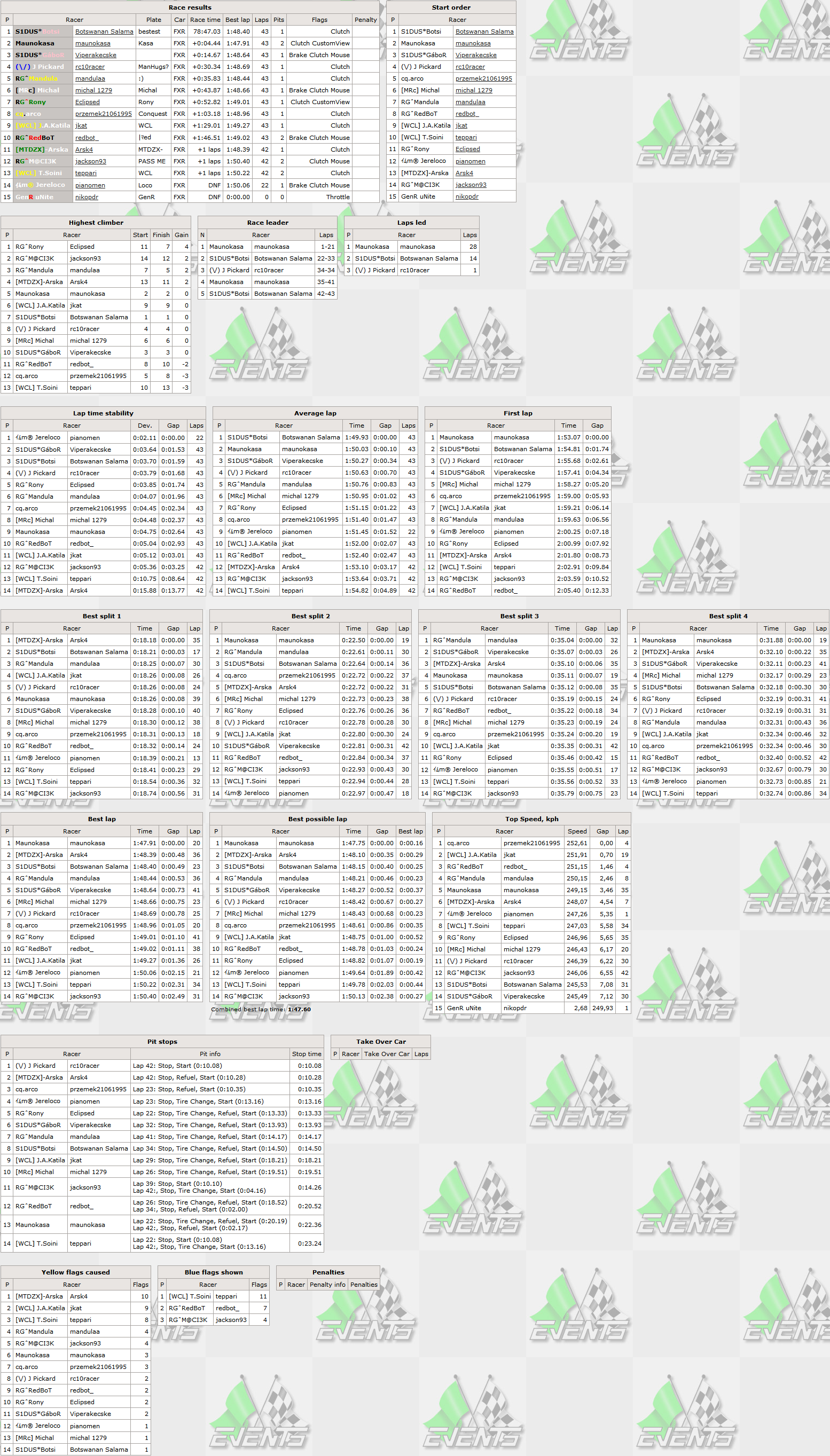 10.08 seconds workless pitstop for J.Pickard earns the mention and he was the only driver to complete the race without any pitwork. Funny,that the usual clock pitter had an identical pitstop,but he decided to destroy a tyre with 2 laps to go and pit for a new one.