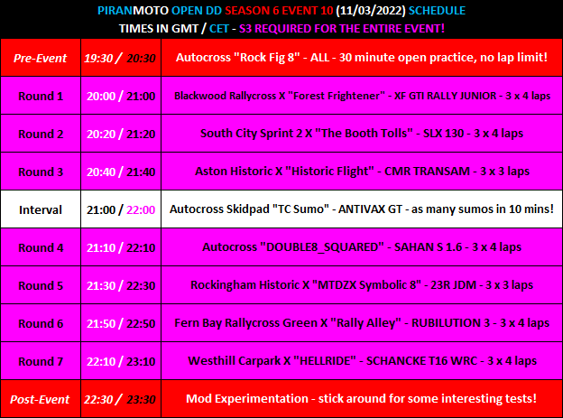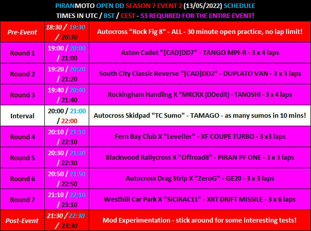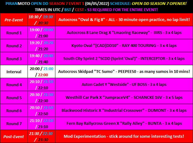 *Don't worry if you're on an S2 licence - we'll leave the mod round until last and leave the mods disabled until then, so you can still join the server and race a full 6 of the 7 rounds!*