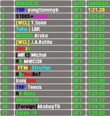 Last UF1 race won by: S1DUS*Botsi - 3 wins in row (221st RTFR - AS Cadet)