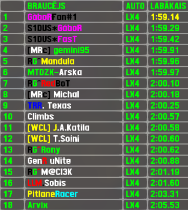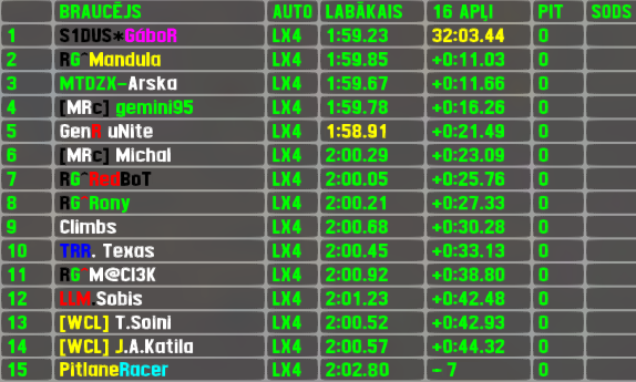 Last LX4 race won by: S1DUS*FasT (223rd RTFR - WE National)