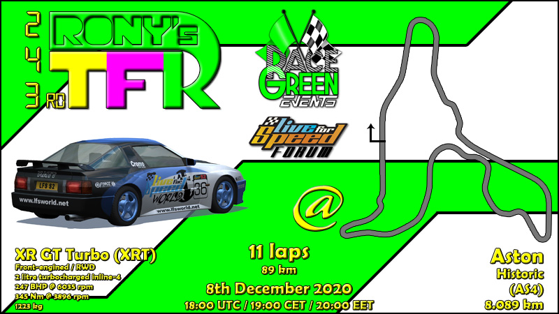 Despite the "official season" being over,there is still one more RTFR event left in this year - in 2 weeks there will be a slick tyre car race and since it's not included in some scoring system other than normal RTFR stats,it will be somewhat different,more details as always in the weekend before it. Full season standings will be posted at earliest opportunity - either in the weekend or early next week!
