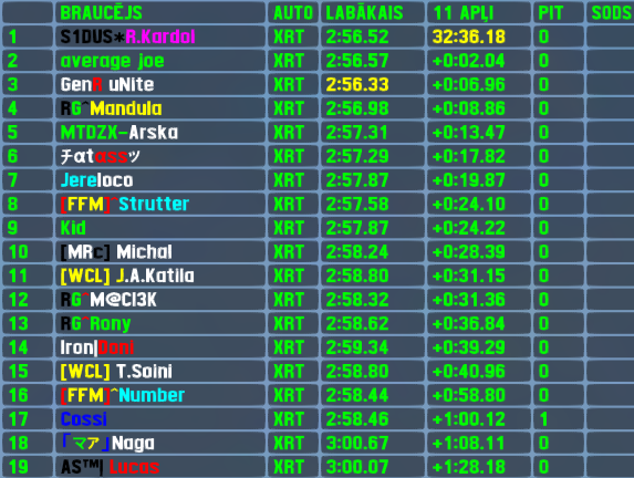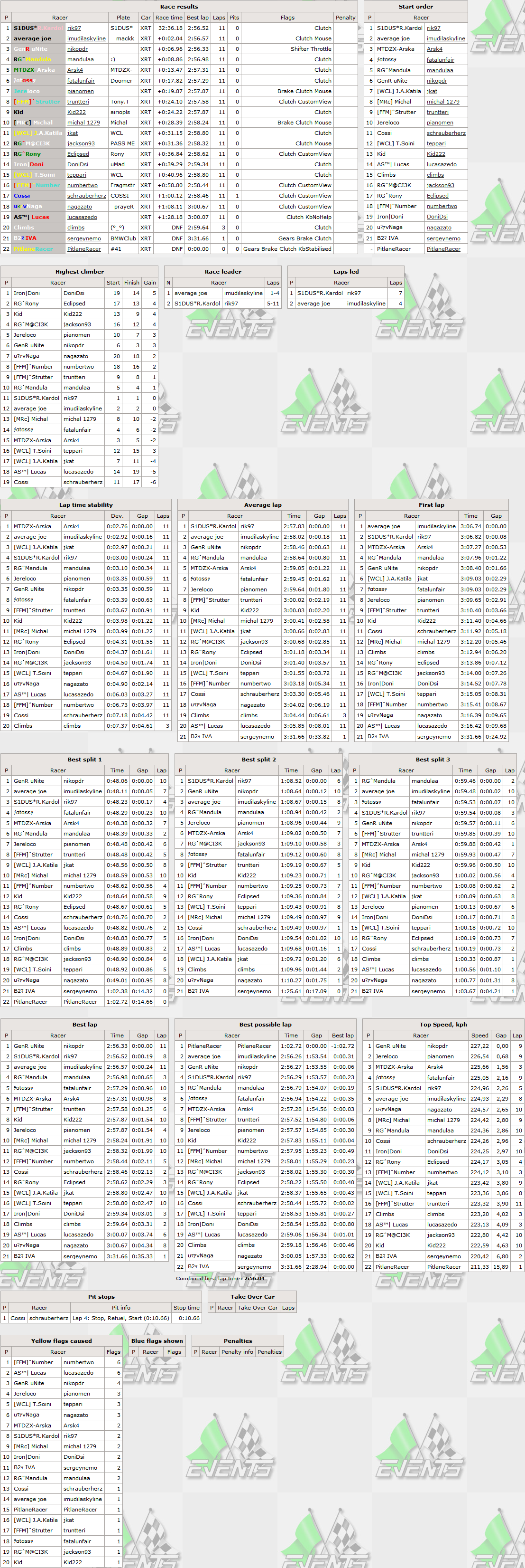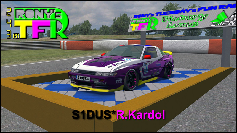 R.Kardol was the fastest in qualifying and scored his 3rd pole position,but early in race he lost his lead,but just to regain in 5th lap. The dutchman did not lose the lead anymore after regaining it,scoring his 6th RTFR race win - he is the 11th driver to score 6 or more race wins,it was also his 29th top5 finish. Average Joe returned to RTFR for the 1st time after his only racewin in 185th RTFR - despite leading 4 laps,the estonian had eventually acknowledge pace of his main rival - 3rd top5 finish for him by finishing as runner up. Unite gained 3 positions between start and finish to finish 3rd,he also set the fastest lap of the race in the final lap,which is his 11th (4th most) and just like winner he also scored his 29th top5 finish. Mandula was actually the only winless driver in yesterday's top5 - 4th position in the finish,15th top5 finish,but Arska finished 5th,scoring his 11th top5 finish.