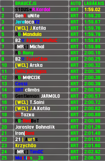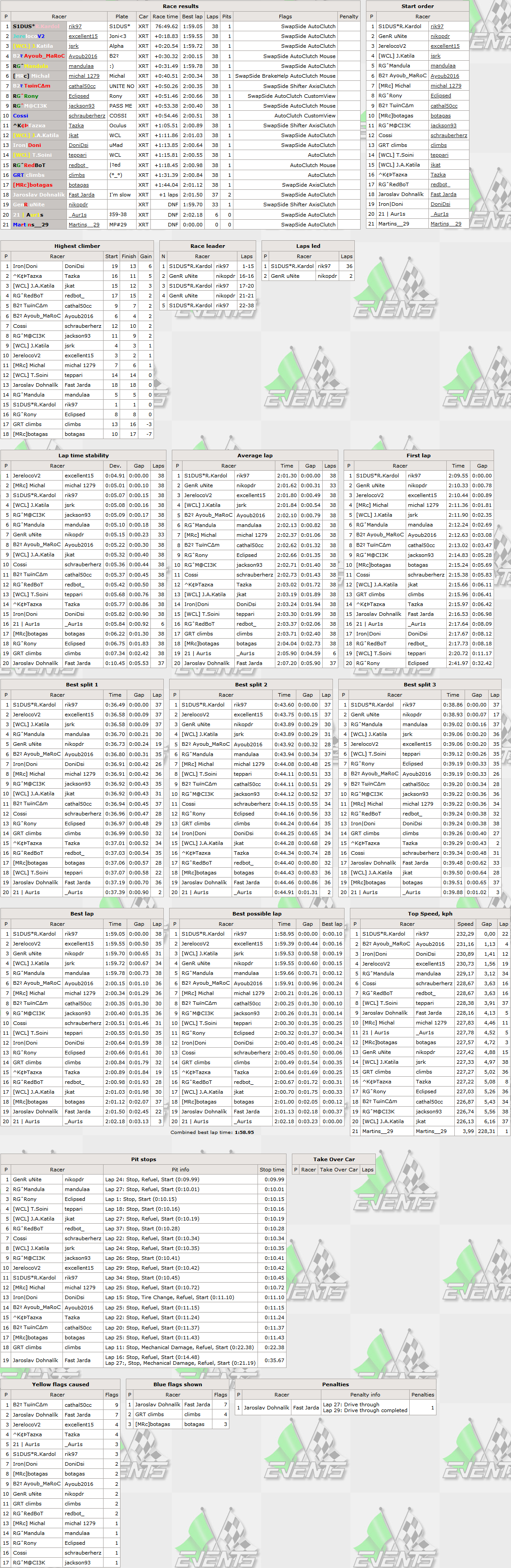 This combo was picked by winner of last year's final race winner R.Kardol and seeing his performance,it was obvious why the choice was made - he was fastest in both sessions and did not led just 2 laps of the race. R.Kardol scored for himself 3rd racewin,3rd pole position,2nd fastest lap of the race and 16th top5 finish (tied 2nd most),which puts him in 4th place in all time success ranking of RTFR XL. 2nd over the finish line was driver,who likes to change his name every race,so let's call him mr.Randomname - he earned his 3rd top5 finish here,and he was relatively closely followed by J.Katila in 3rd position,which is his new best finish result in RTFR XL,also 3rd top5 finish for him. 4th was Ayoub Maroc repeating the better result of his 2 previous finishes and top5 was closed by Mandula,also scoring his 3rd top5 finish.