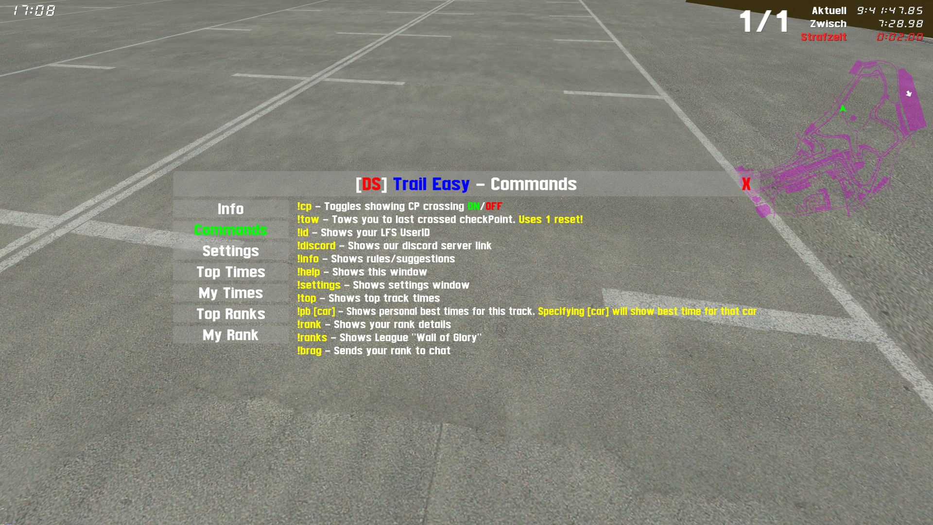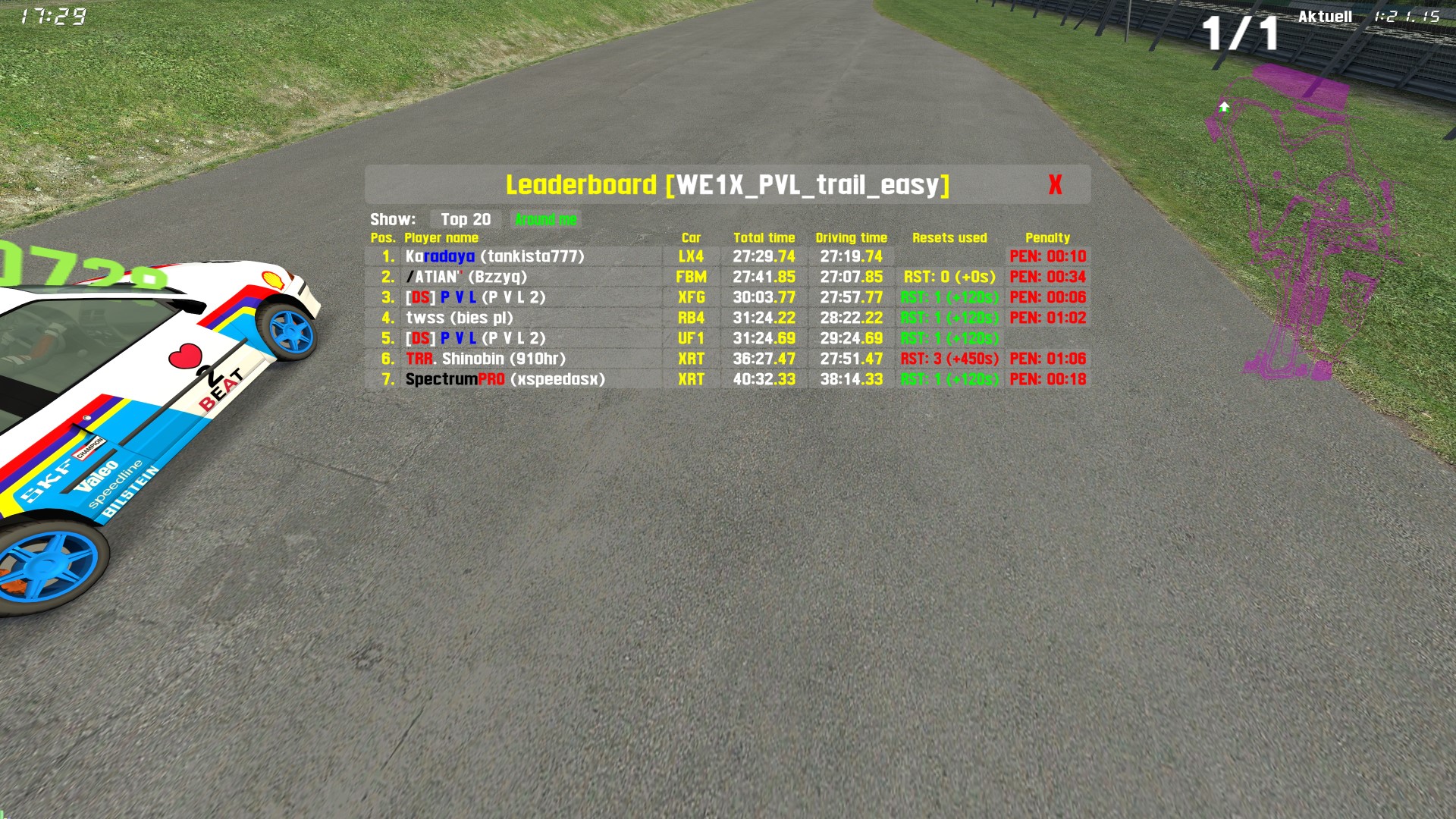 by LFS will be added to driven time as well as for used resets ending up in total lap time at the end. The leaderboard even shows