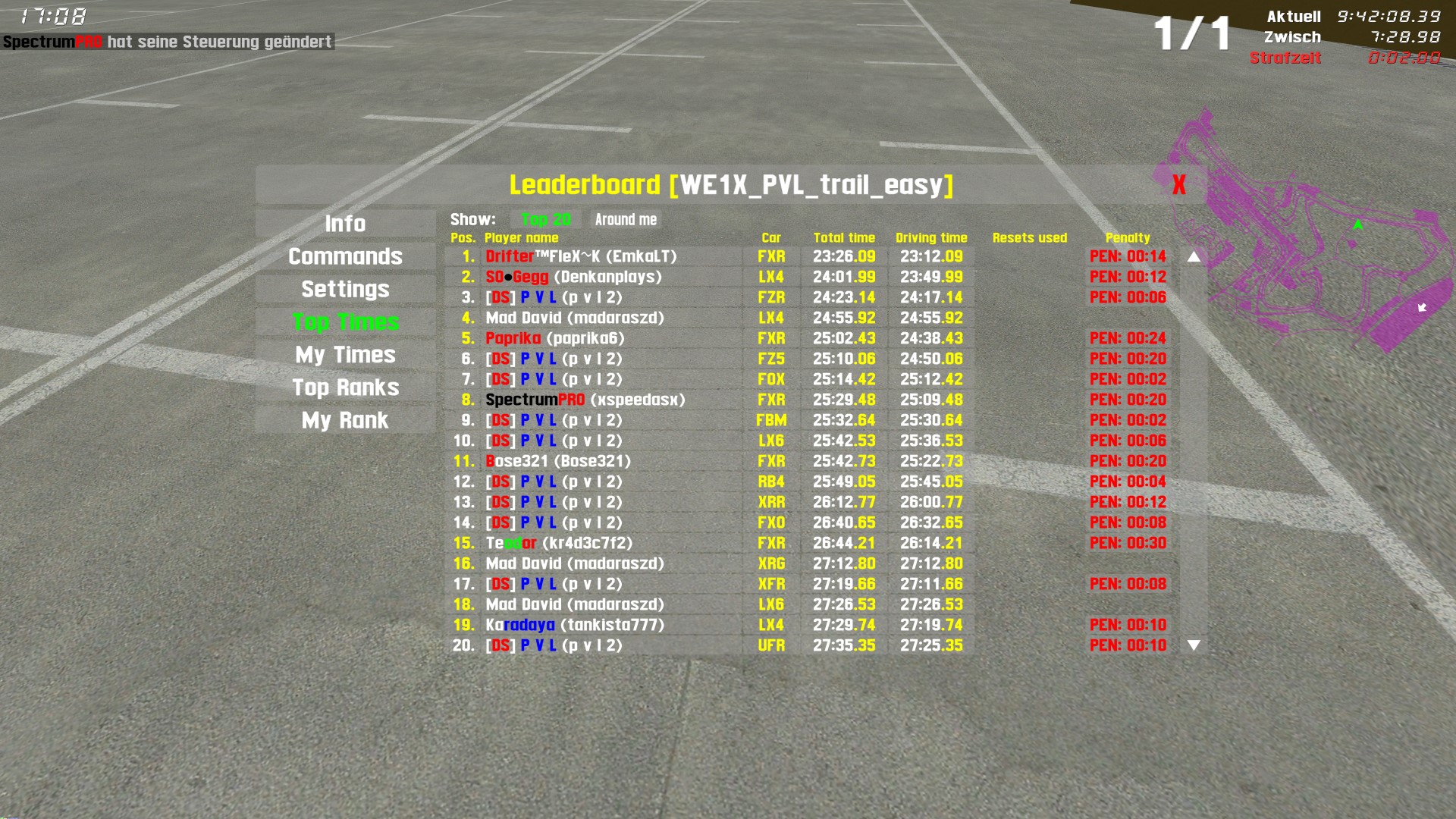 As you can see there is not only a TOP TIMES ranking for the really fast guys to battle for top positions, where penalties given