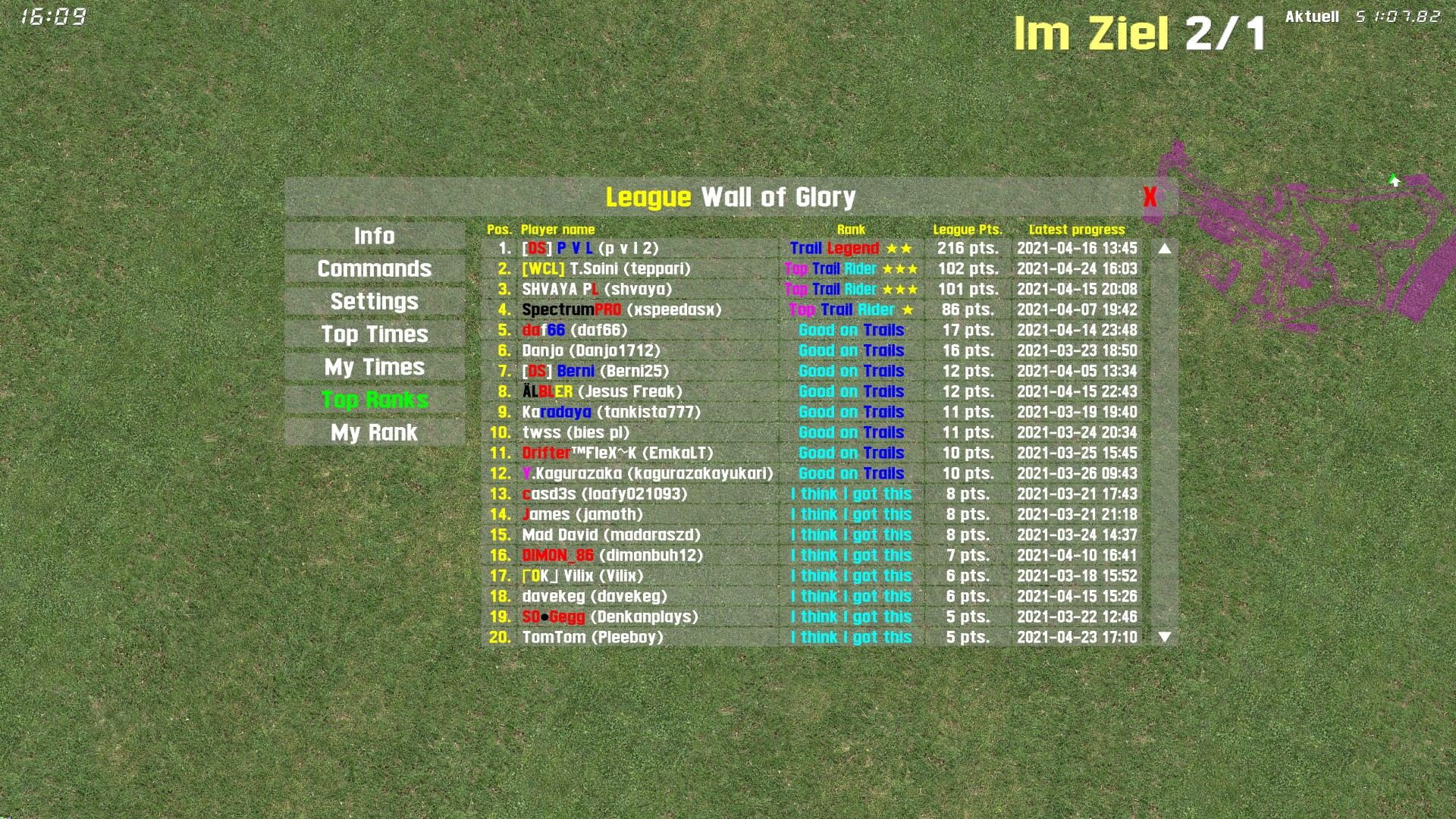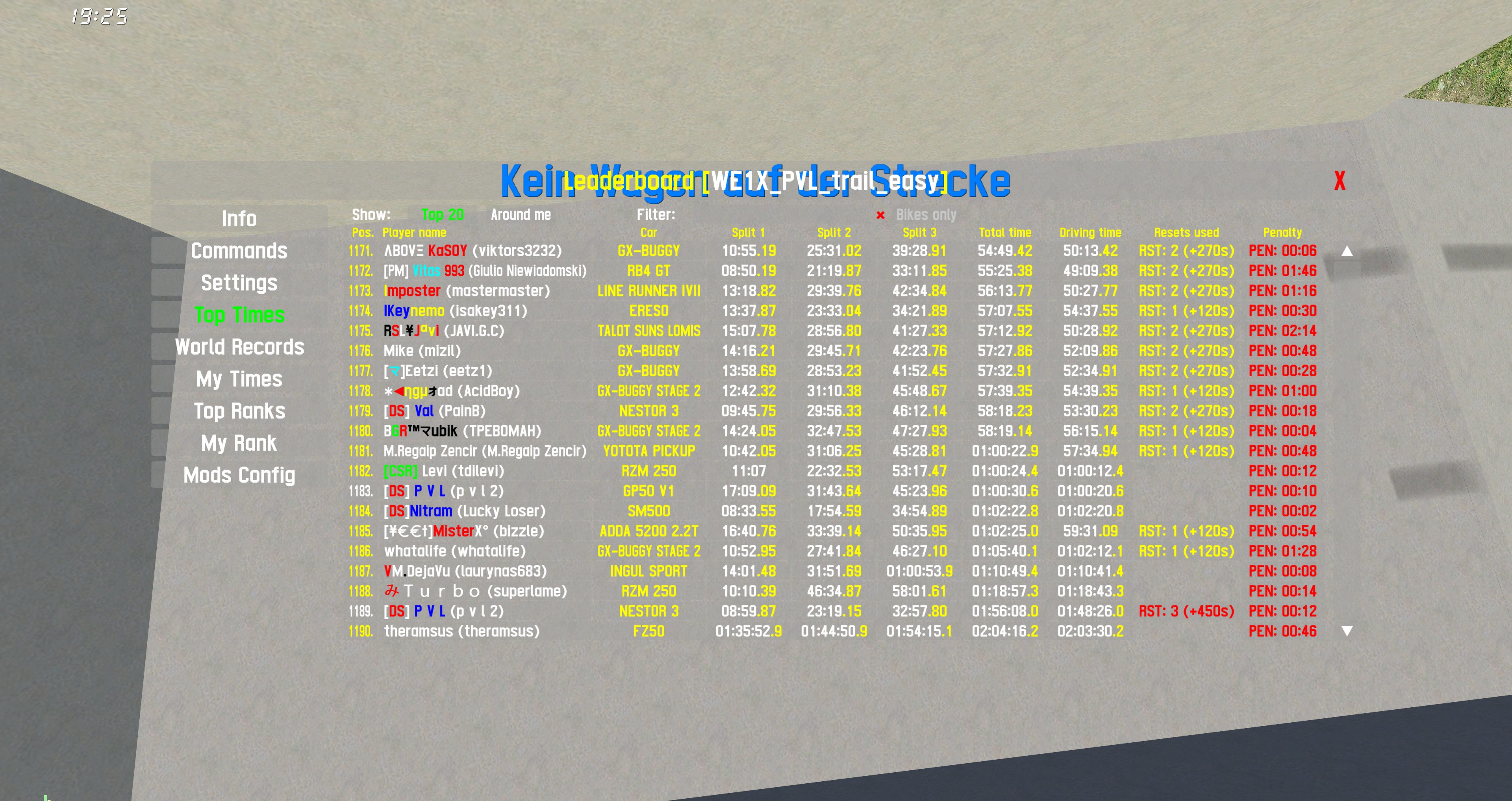 The fastest lap on trail easy did Fox 2 in a BF1 with a time of 20:05,57 minutes. Thumbs up