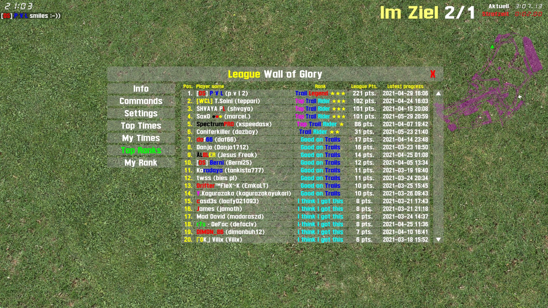 The fastest lap on trail hard did Marcel . in an FZR with a time of 47:03,17 minutes. Thumbs up