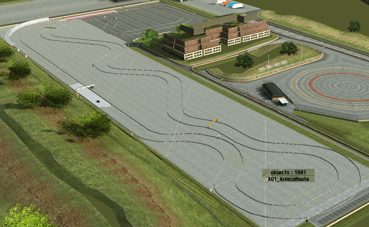 If anyone interested, (and who would be?), the way I made this layout (don't always use this method), was to create a route by laying down 16x16 slabs in straight lines and curves, then driving round, changing route as I did laps (especially if I fell off the slab going round a bend). Once I'd done a few laps, went into overhead view to look at slabs and my skid marks, which gave me good idea of where track should be, then placed tyres to show where I should place barriers. Once tyres placed to give me inside and outside track limits, done more laps seeing if I could keep between tyre barriers, and moved tyres where I thought applicable. Once I had track potentially as I wanted it, I replaced tyres and slabs with armco fencing until I'd done full circuit. Then I added couple small ramps, signage and tyres in barriers.
