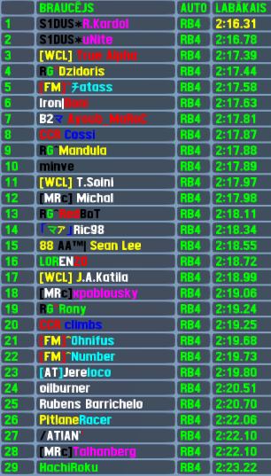 Yet another difficult combo was featured in RTFR XL race - the simple car/track combo maybe was not so tricky to race,but the well know RB4 tyre overheating trouble deffinitelly had a huge impact on pace for many drivers as they had to balance pace and tyre temperature for best overall performance during the 34 laps long race. Despite pessimistic prognoses of this being the least attended RTFR XL race of the year,there were a total of 29 attendees,from which 5 just set a laptime in qualifying and never joined the grid,while only 75% from 24 starters reached 1/3 of the race distance - all of them carried to the finish.