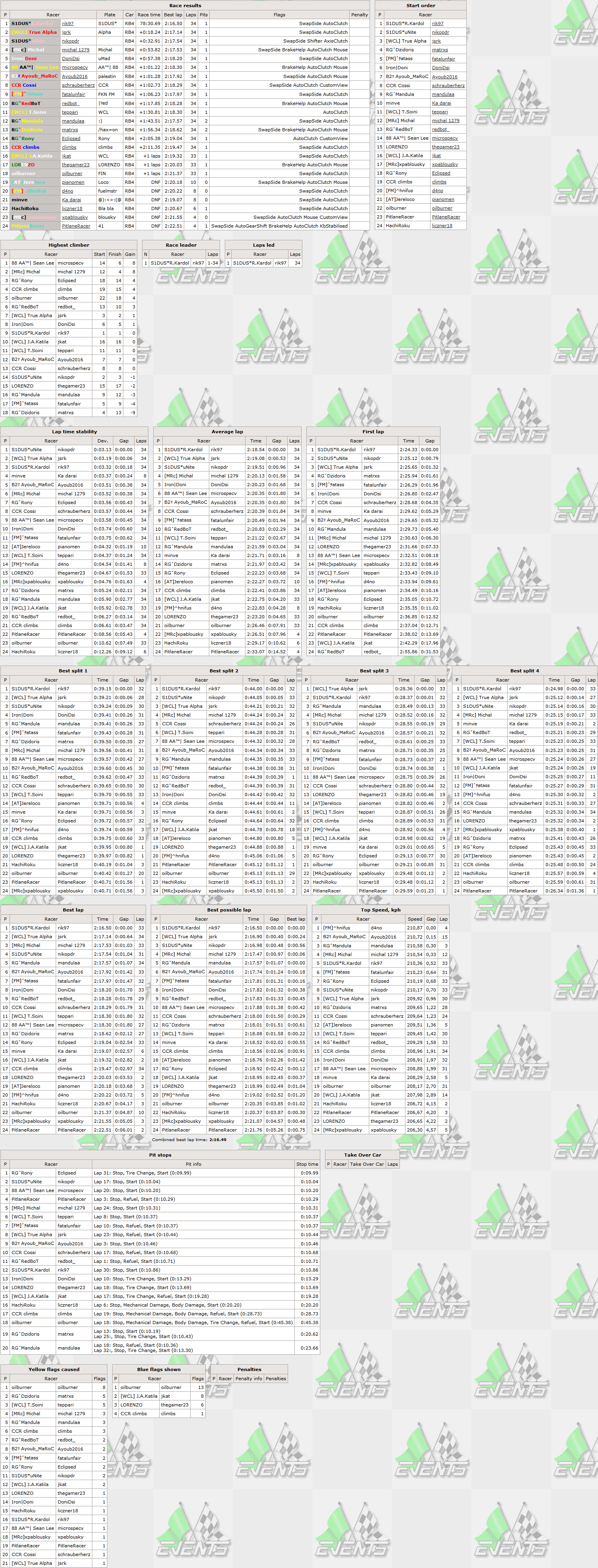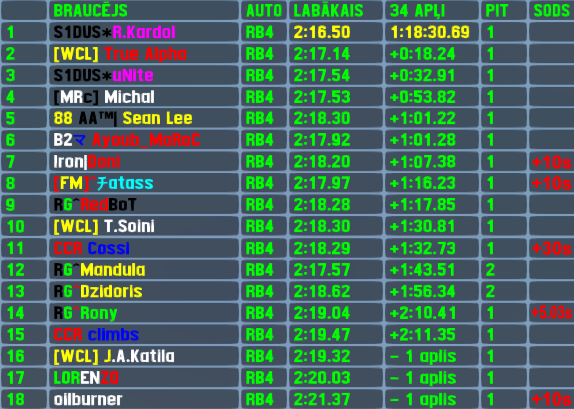 RGˆRony - receives 5.03 seconds penalty added to his finish time for minimum pit time violation.
