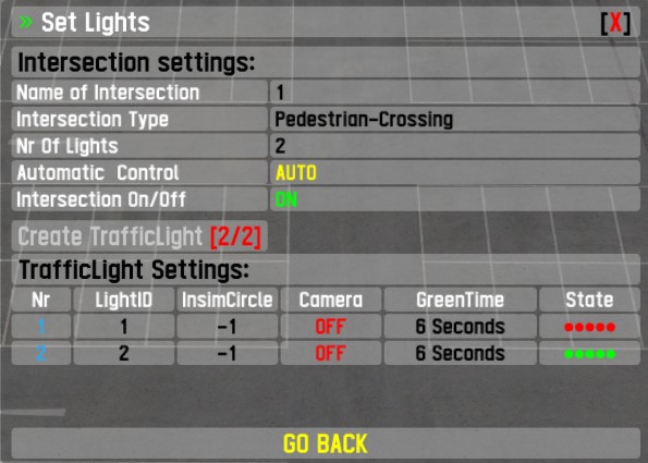 - Enable/Disable intersections: light will blink yellow.