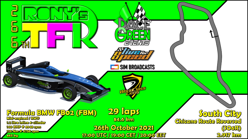 Now in next 2 weeks RTFR will feature relatively similar combos in upcoming races,but despite cars being in same class and tracks both using the tarmac of Kyoto,there are only few options to make races even more different. RTFR XL next week will be run with RAC on Kyoto GP Long reversed - more info on that will be posted during this evening. And next normal RTFR will be run with other LRF class car on other Kyoto configuration - more info on that you can find out when watching stream. Or waiting for info in the weekend before the actual event. And note the UTC time change for next events - the area where RGE is hosted turns clocks back to winter time this weekend,so we adjust the UTC time to keep events here on same time!