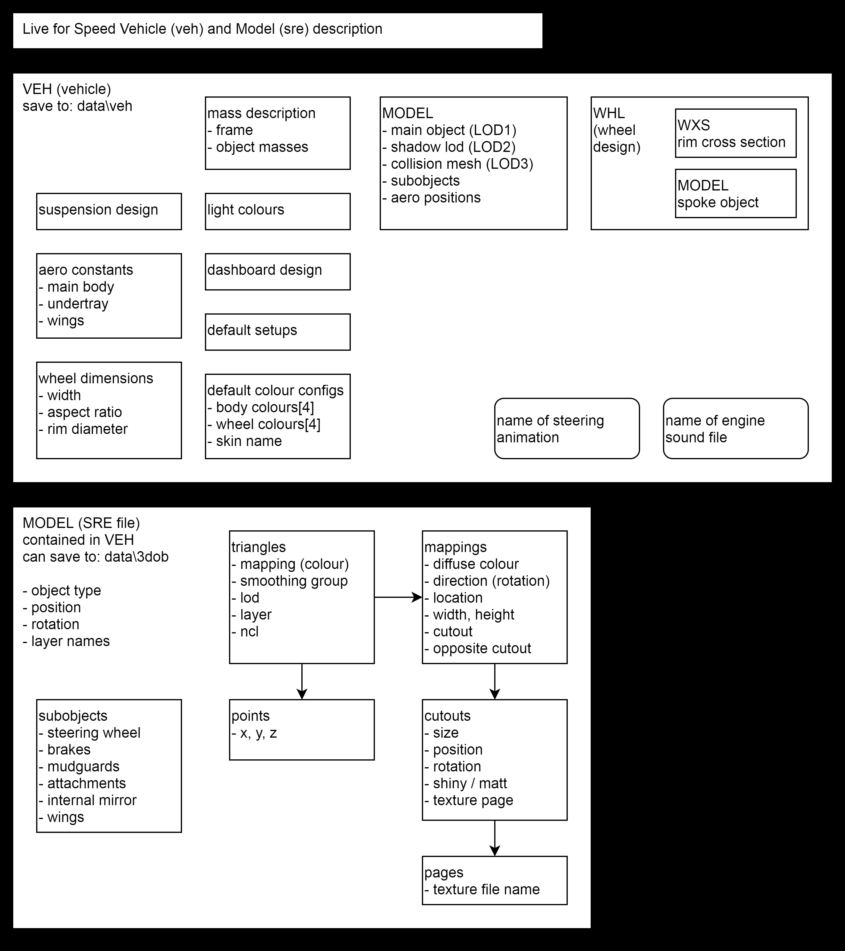 - LFS mods system stores the 'vob' inside a .veh file (which also contains the spoke object, rim design, physical parameters... many things)