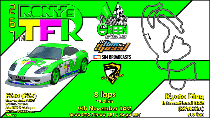 Last Kyoto race won by: S1DUS*GáboR (258th RTFR - FOX @ KY North Hairpins)