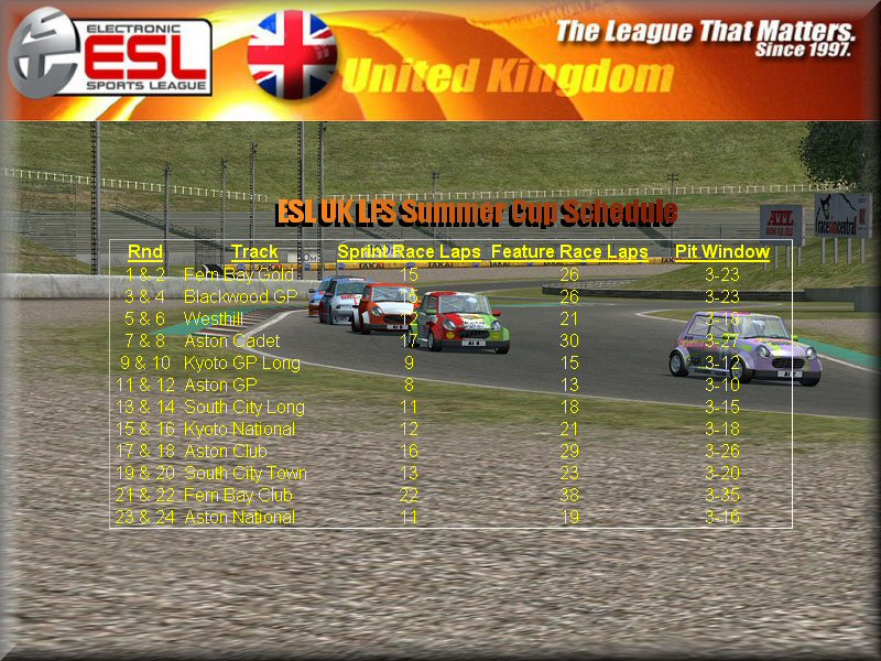 Also, please keep a check here: http://www.esl-europe.net/uk/lfs/race/summercup/forum/1325/ for Information. I do try to update there, and here, but sometimes might forget.