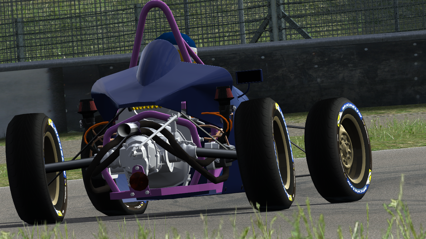 The car is now a mixture of formula vee and honda 1600... since the vee suspensions were hard to recreate on lfs i decided to go outside the box and put in a honda 1600 suspension (technicaly, any normal formula suspension). But stills needs lots of work since it's pretty unestrable on the rear..