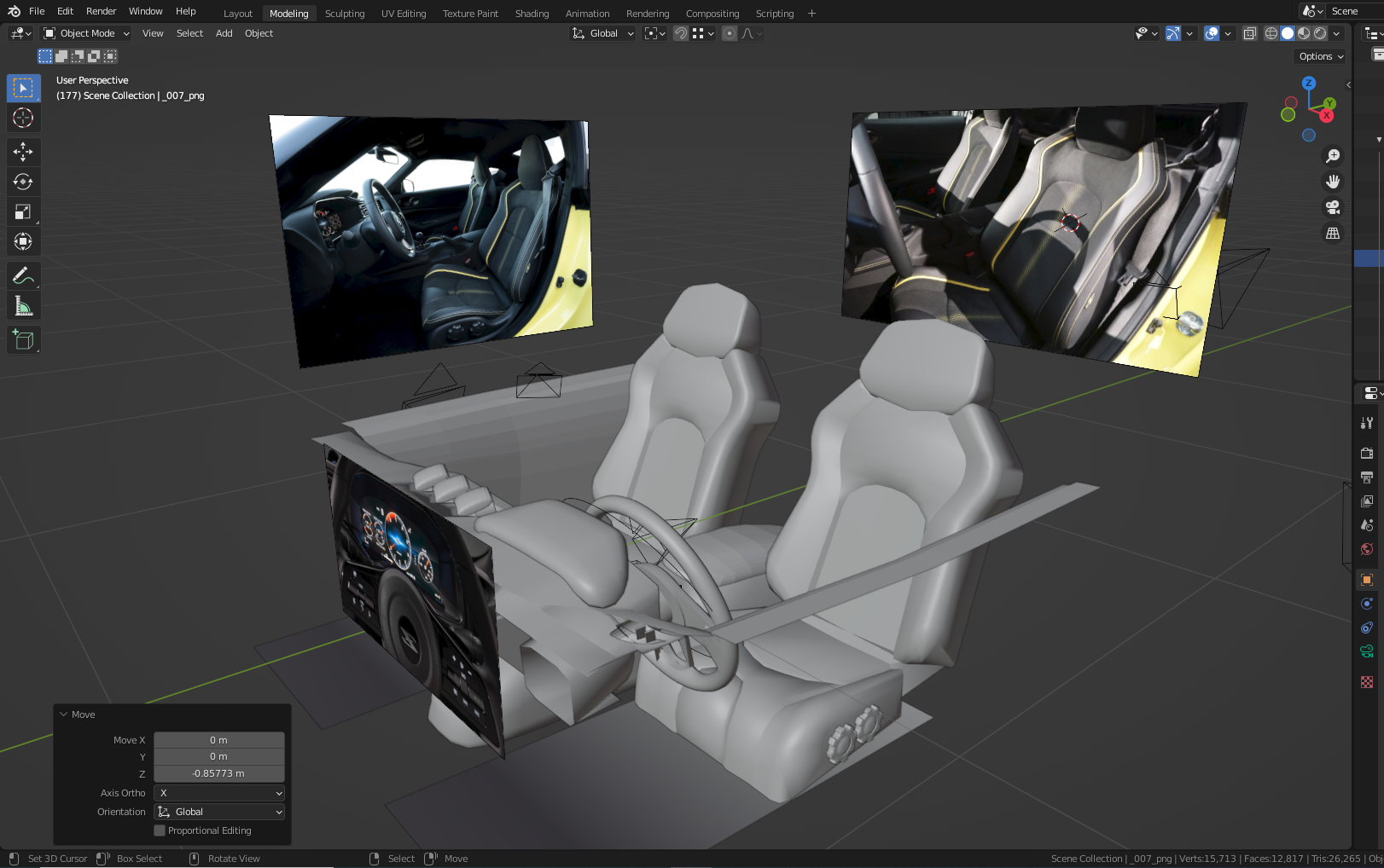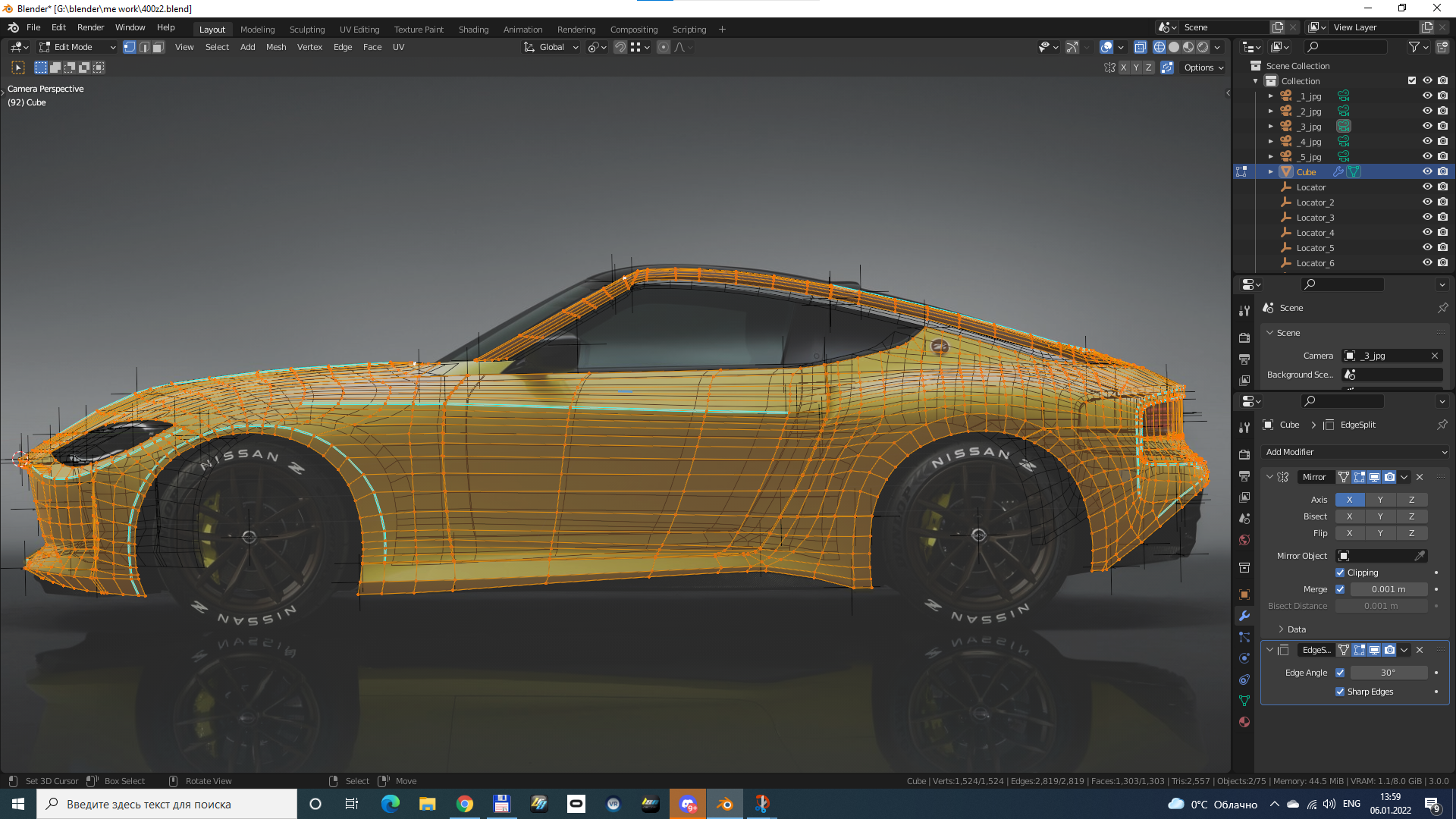 One of the viewers suggested a new way to modeling through imagemodeller program. You load photos of the car into the program, create there tracking points to conspicuous places on the car, usually, these are the corners of the gaps, after 8-14 points calibration of the cameras is possible, You need 40-50 points to be accurate result, after which it can be exported to a blender and with high accuracy. Export In the fbx file, there configured cameras and point cloud are exported as empty objects. That saves a lot of time and make it much easier to modeling.