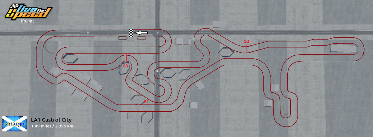 Track length of layout is 1.49 miles / 2.395 km overall.