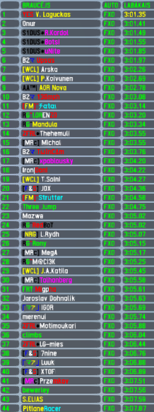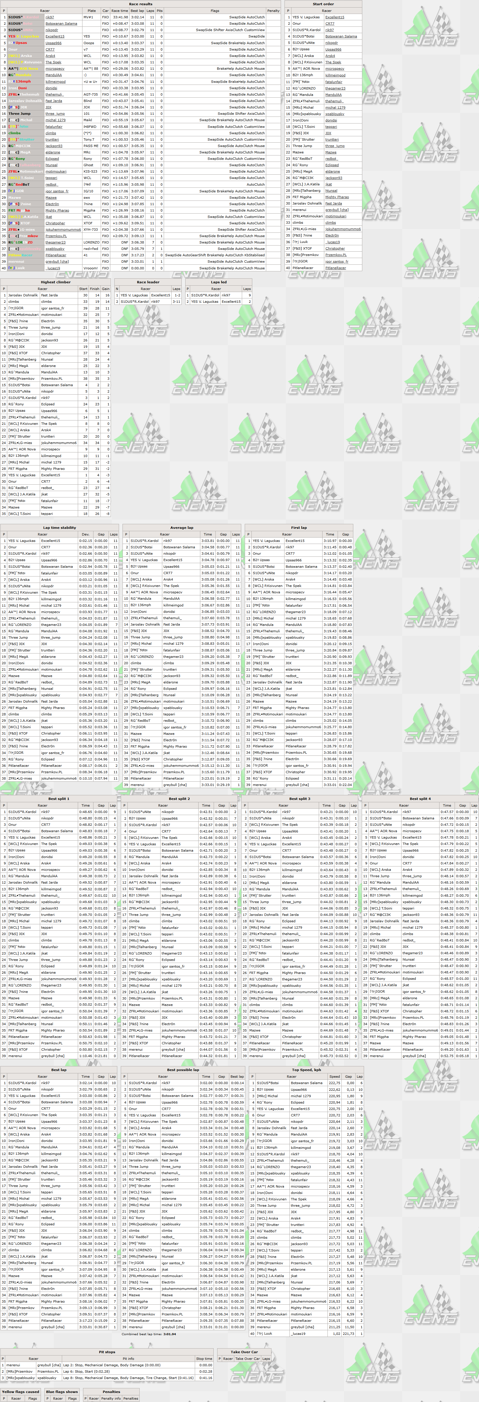 ZFRL•Motimoukari - receives 30 seconds penalty added to his finish time for avoidable incident on lap 6,where he failed to avoid further contacts. Future incidents might lead to higher penalty.