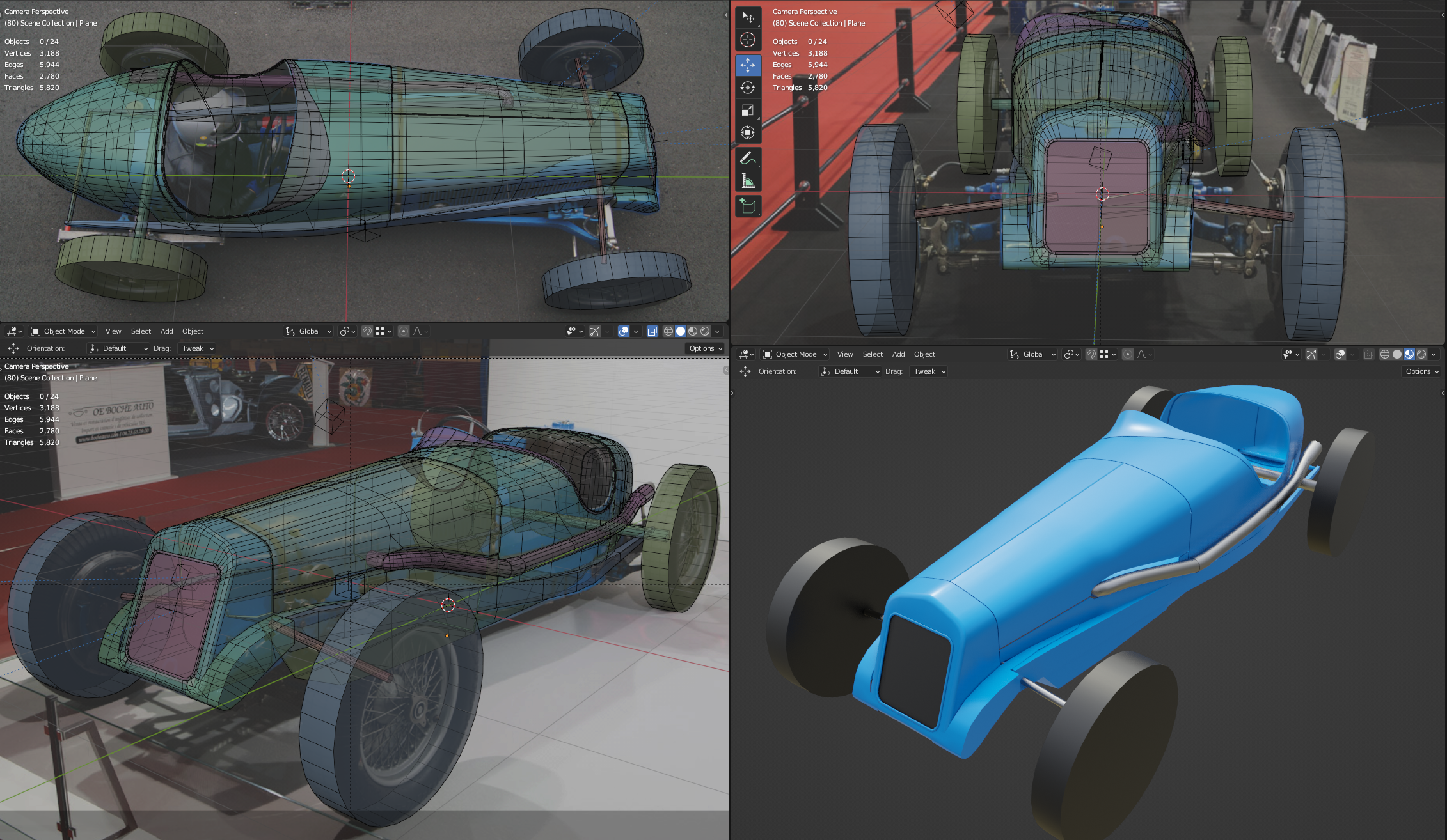 I started working on a mod based on the Delage 15 S8, a racing car build in 1926. This is the very beginning of the work, mainly finding the right proportions of the car.