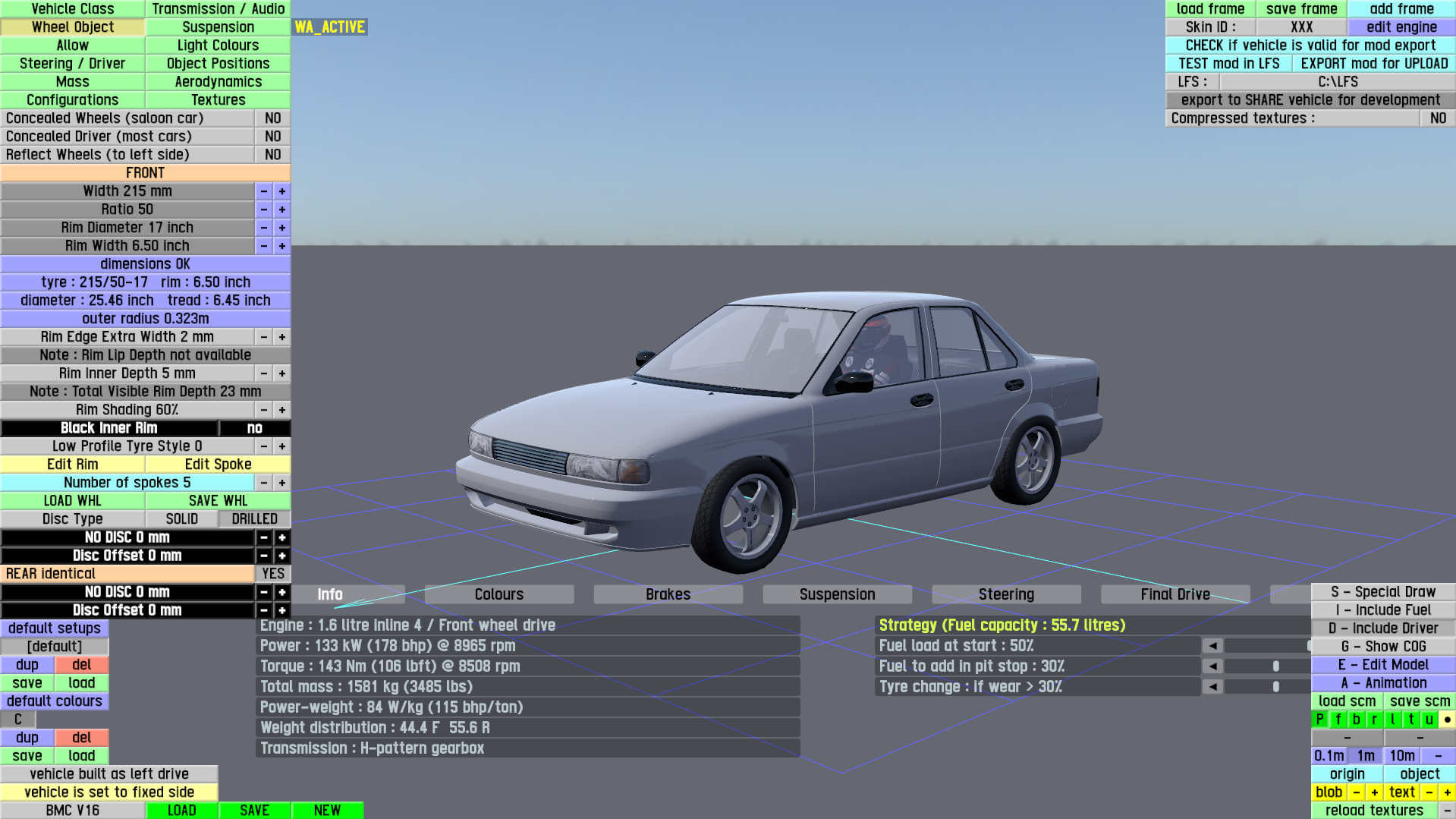 Hi, im a modder from GTA V and i decided to convert my own models to LFS. This one is a (debadged and modified) Nissan Sentra B13 that was modelled with blender using images as a base, original developer is "MidnightAurora" and i have full permission to use the model. Hope you guys enjoy it but im learning as im making the car so stay tuned for this WIP
