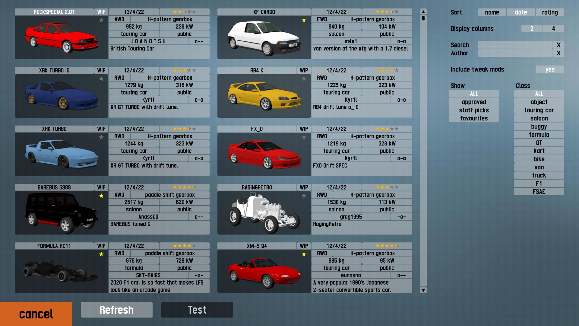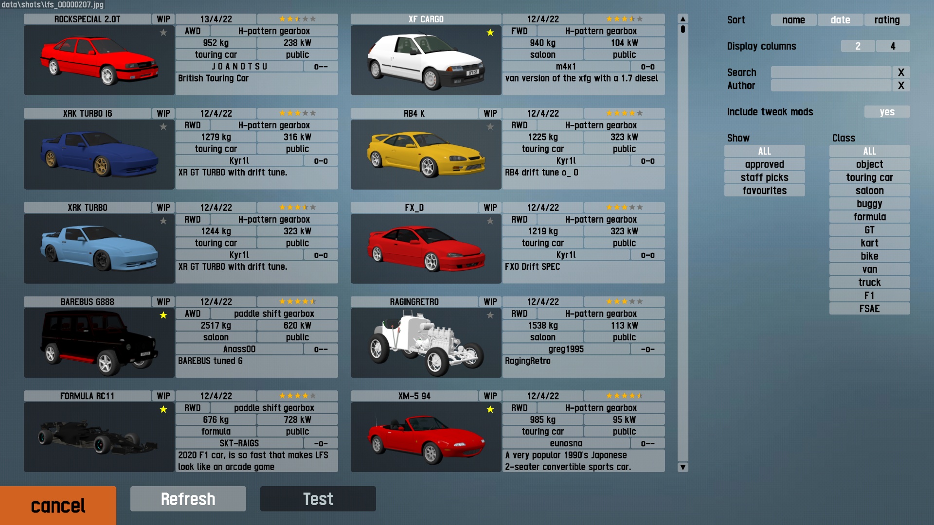 This happens with any mod but seems random as it sometimes work. Dunno what causes it or if its just my LFS doing shenanigans